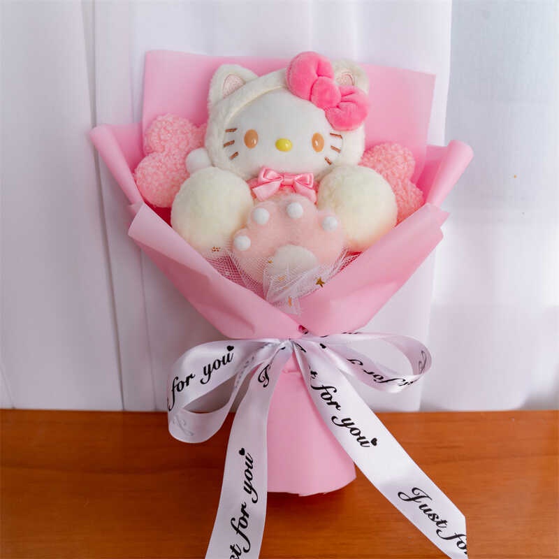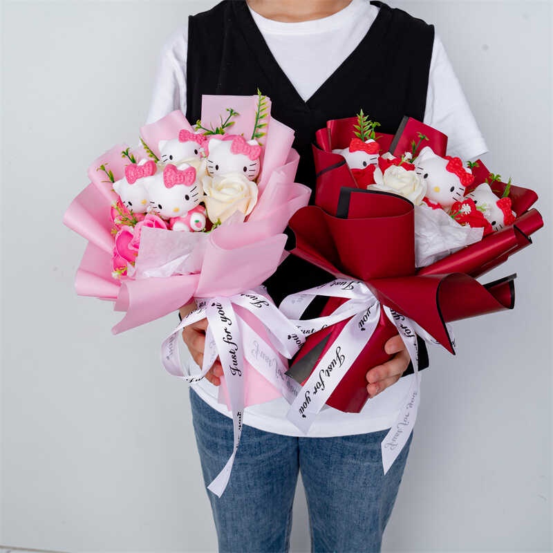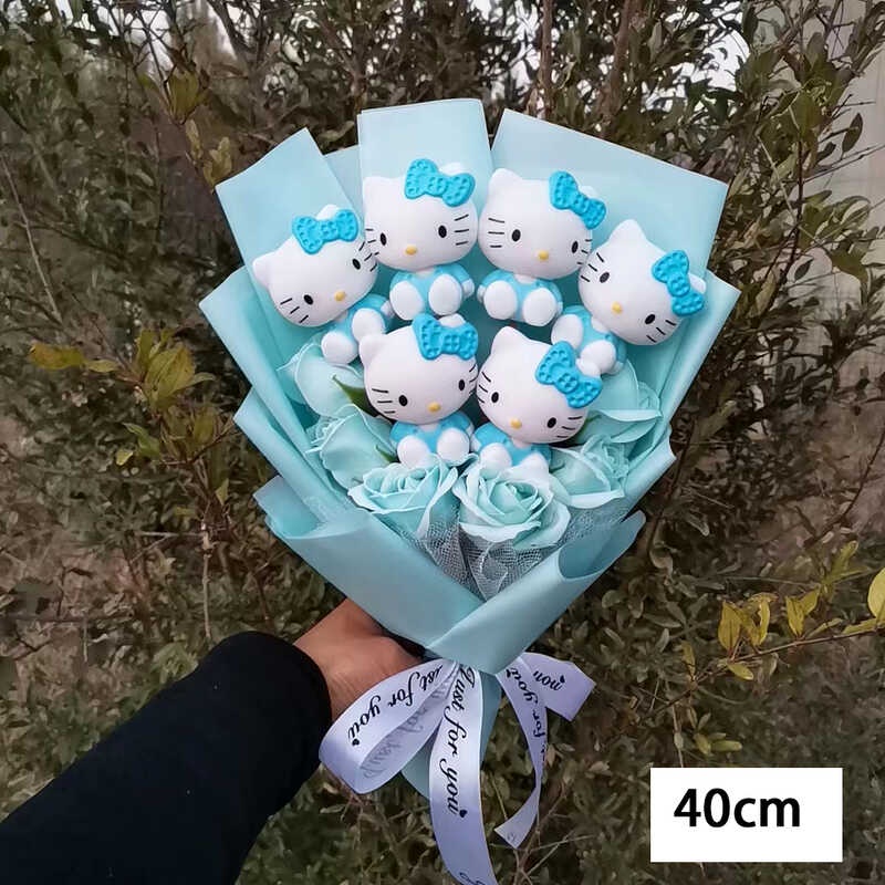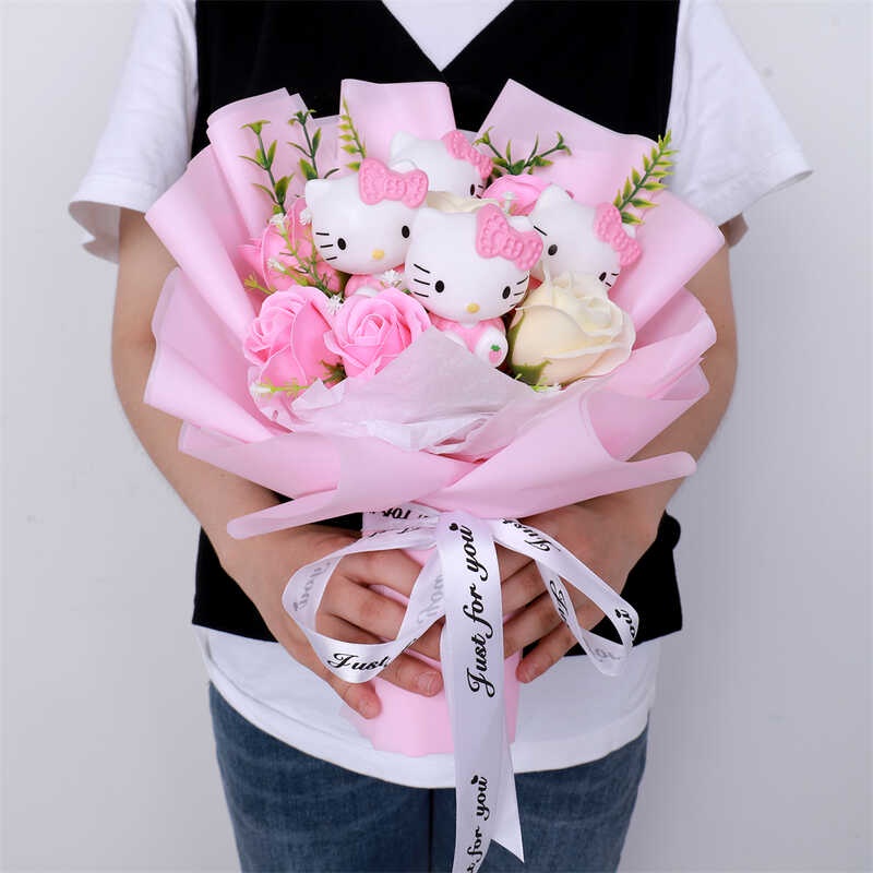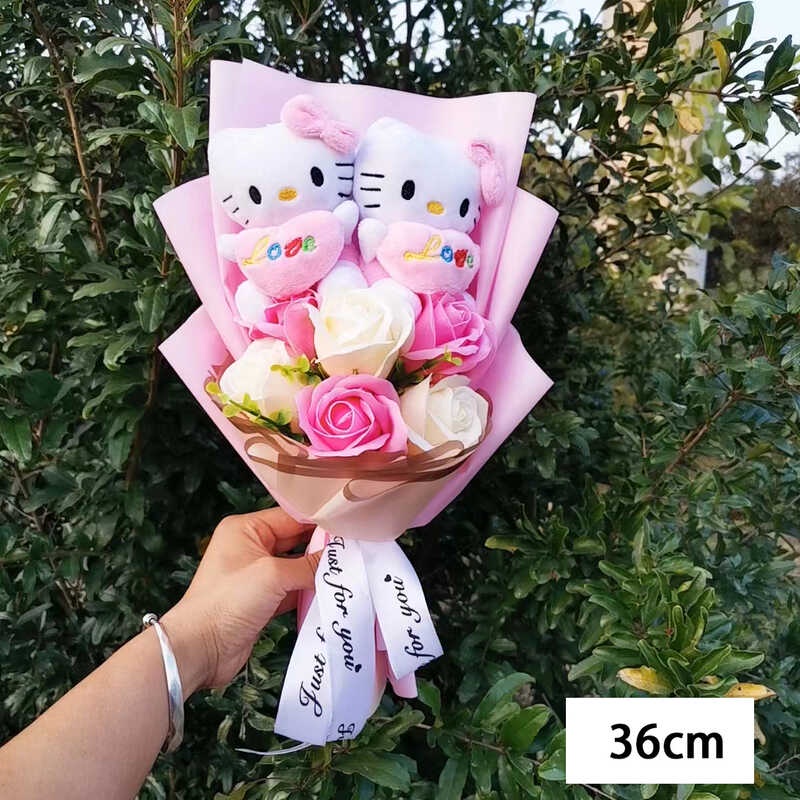 Hello Kitty Cartoon Plush Bouquet Anime Sanrio Rose Soap Flowers Doll Home Wedding Decoration Chris