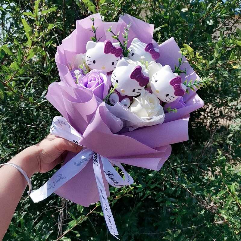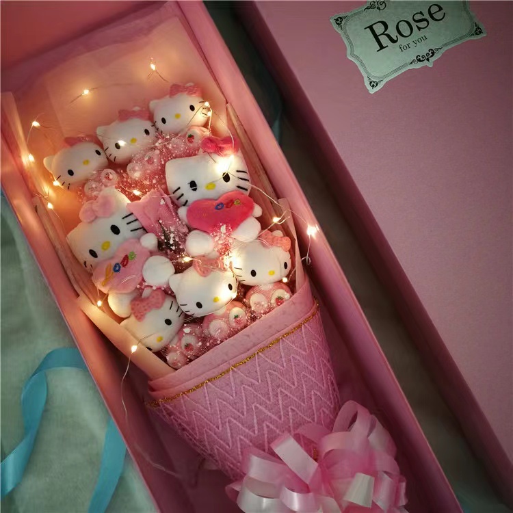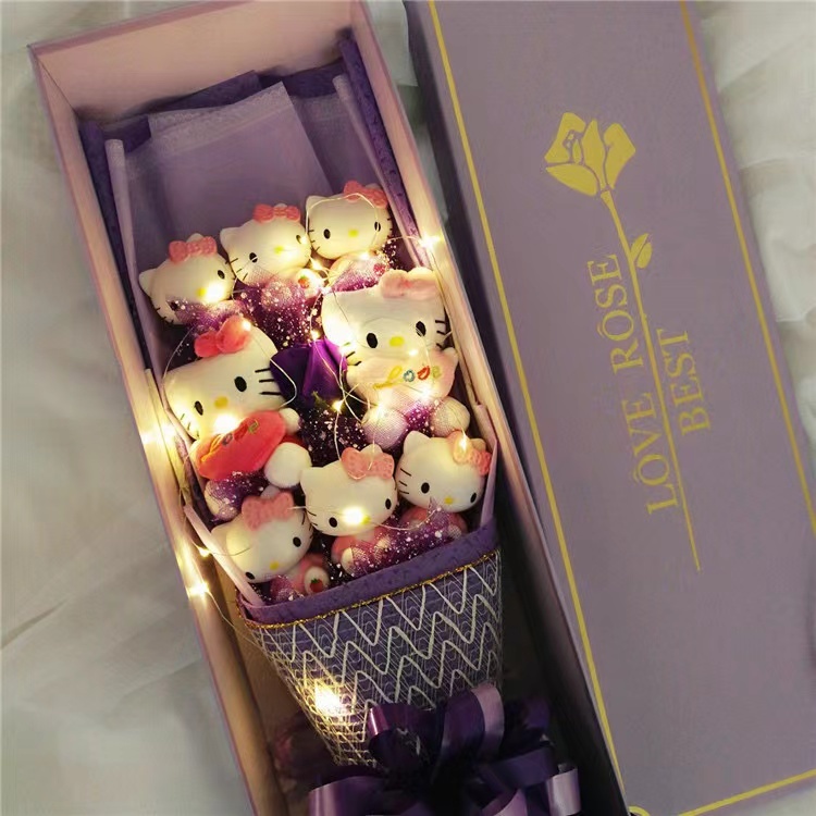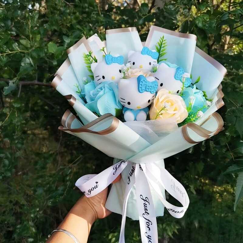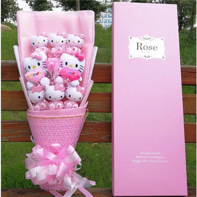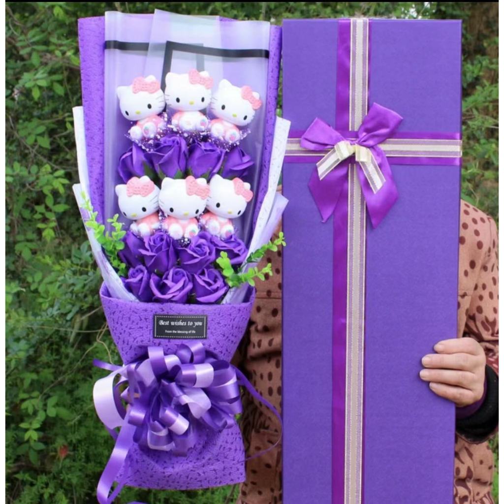 Hello Kitty Cartoon Plush Bouquet Anime Sanrio Rose Soap Flowers Doll Home Wedding Decoration Chris
