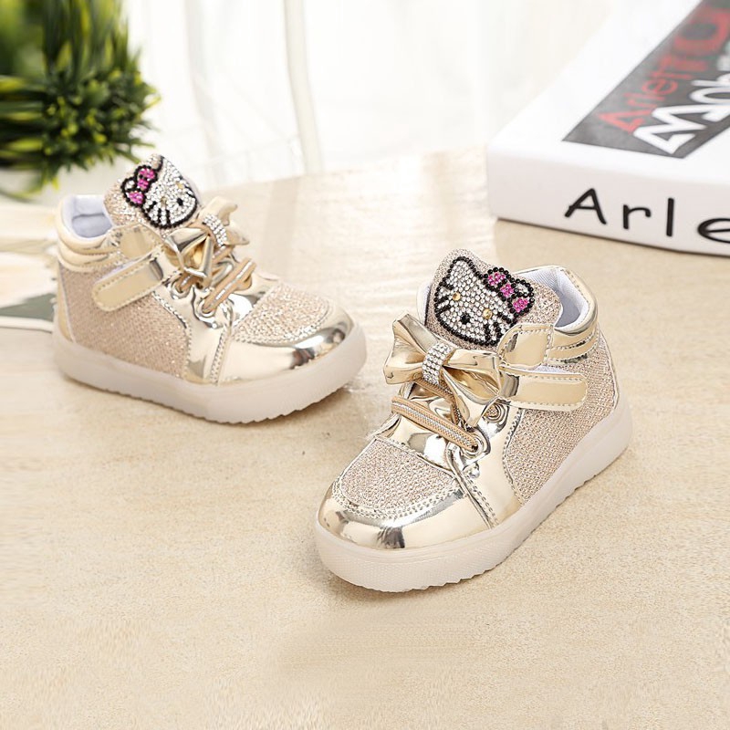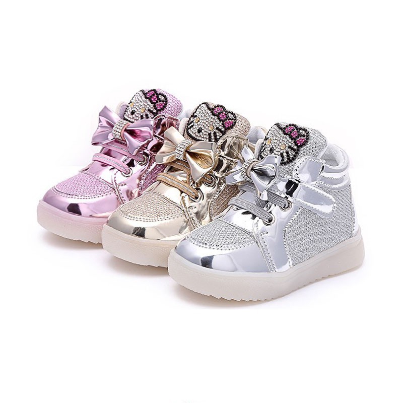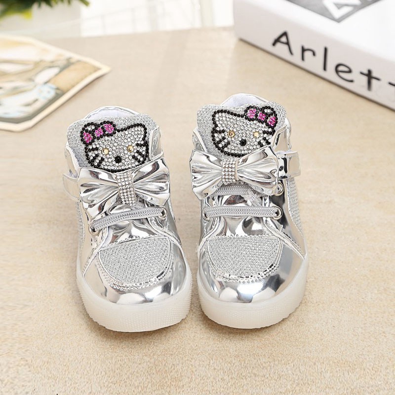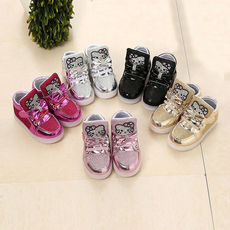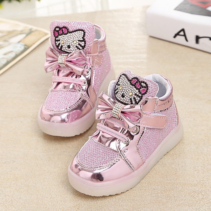 Hello Kitty Led Sneakers Light Lace Up Kids Shoes Luminous