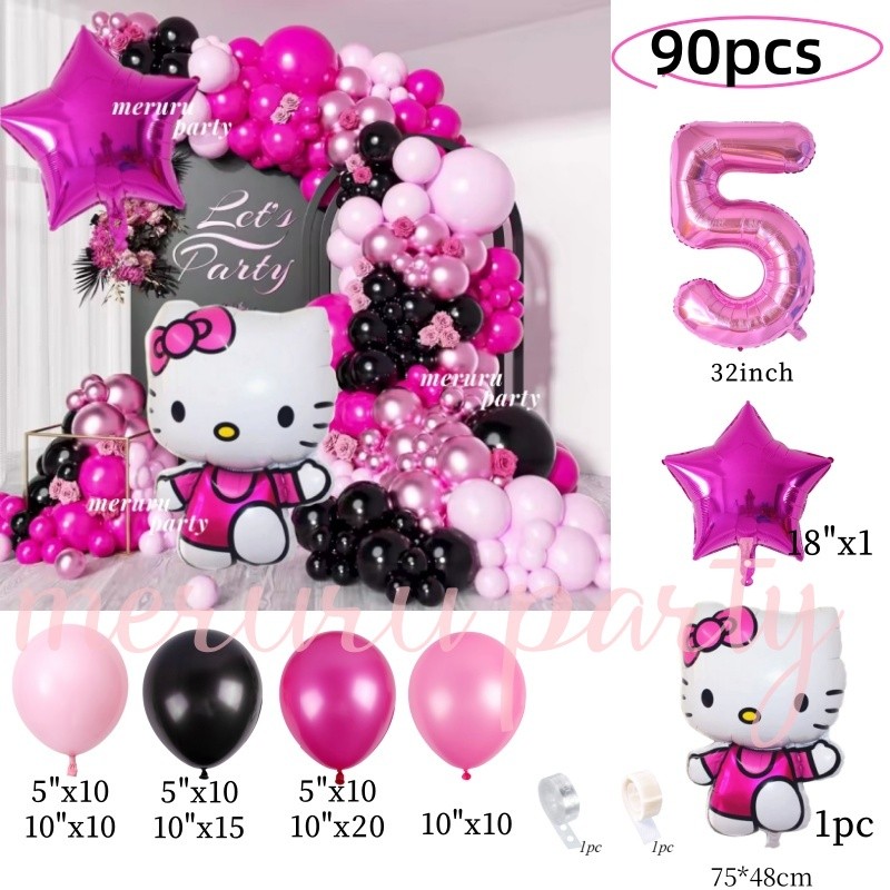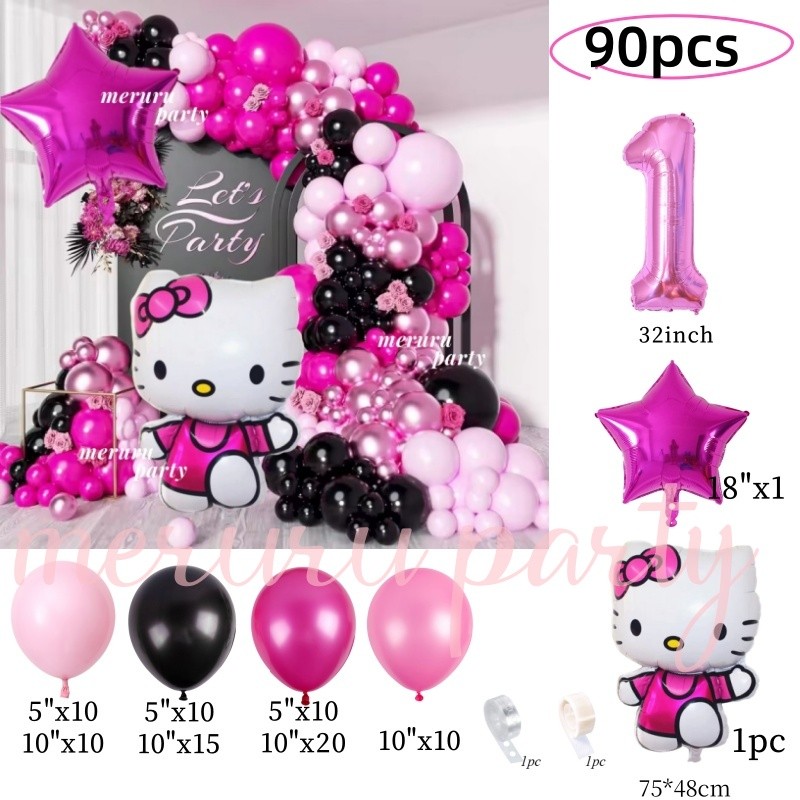 Hello Kitty Theme Balloon Garland Arch Kit Cartton Kawaii Kitty for Girl Birthday Party Decorarions