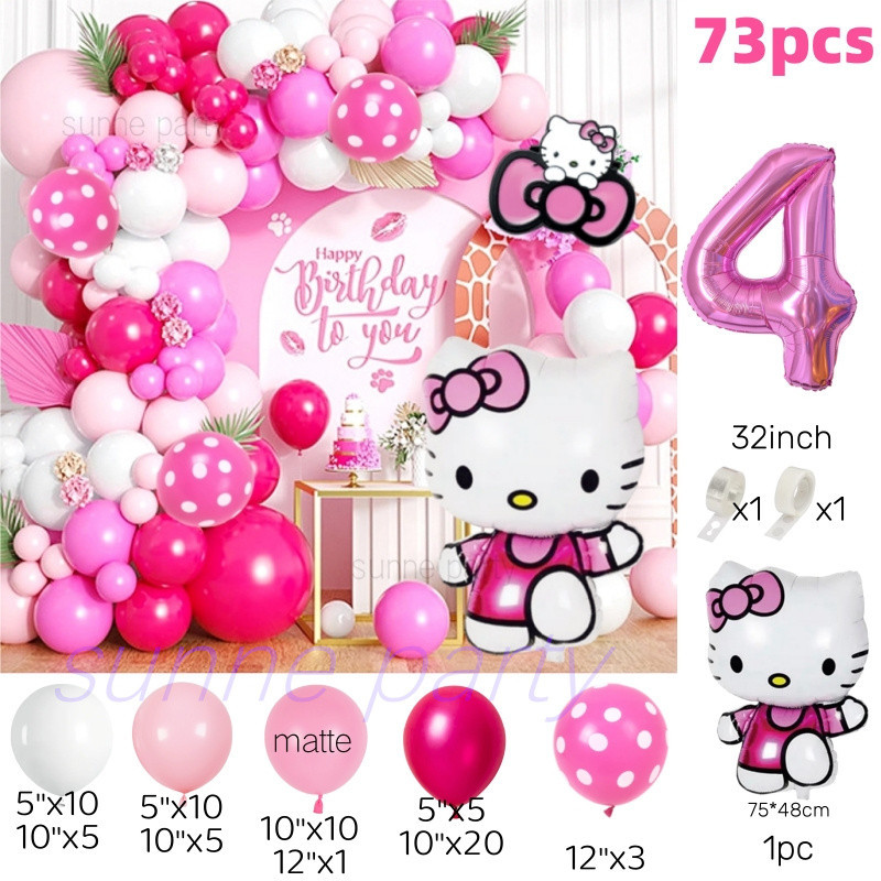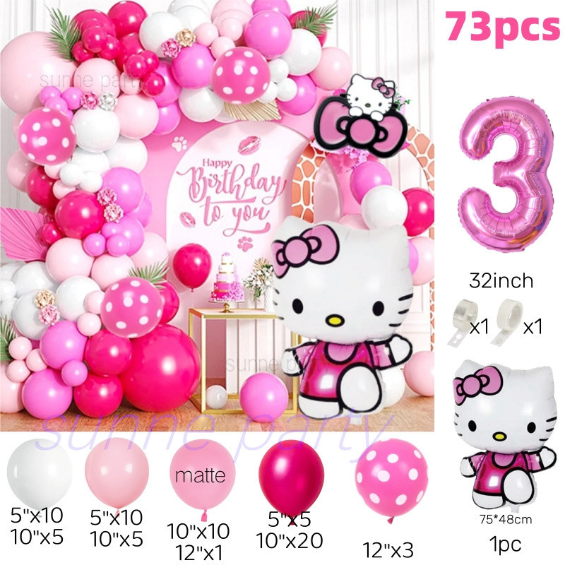 Hello Kitty Theme Balloon Garland Arch Kit Pink Rose Red Latex Balloon Birthday Party Decorations