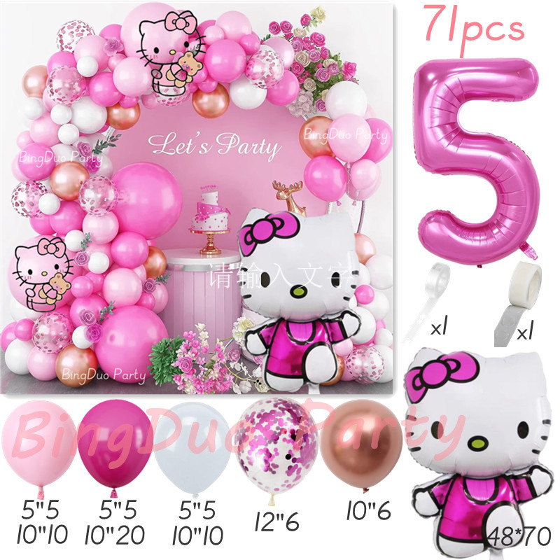 Hello Kitty Theme Balloon Garland Arch Kit Standing Kitty Foil Balloon Pink Number Confetti Balloon Baby Shower Party Needs