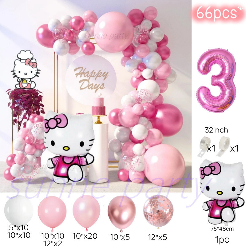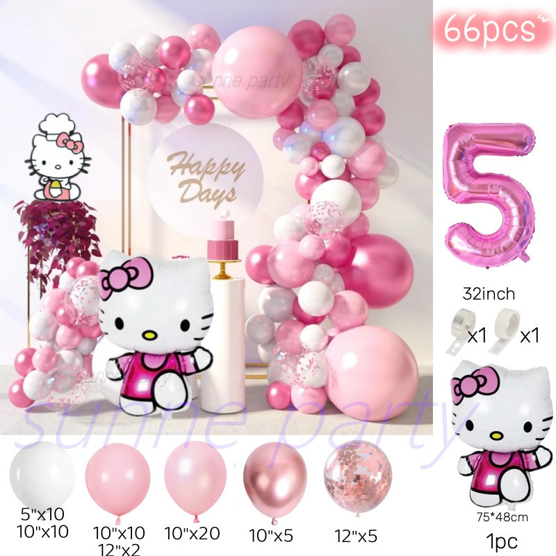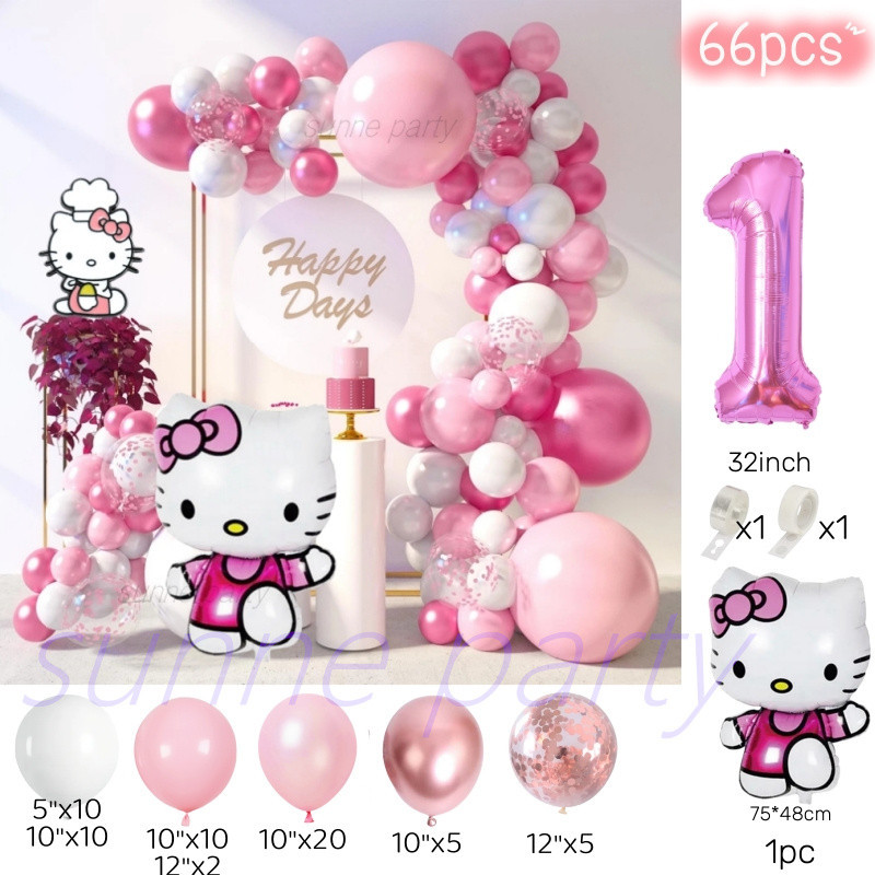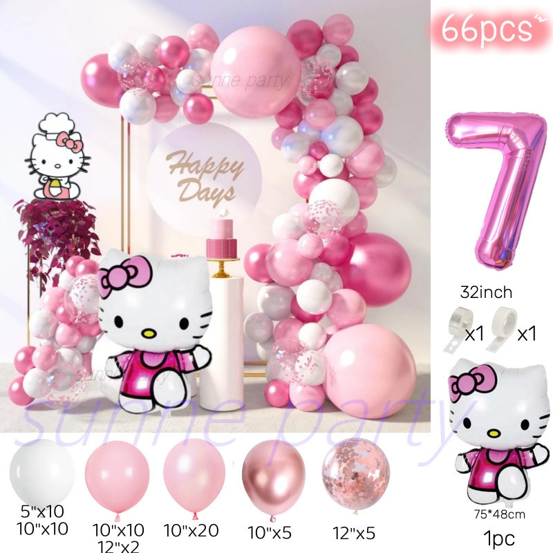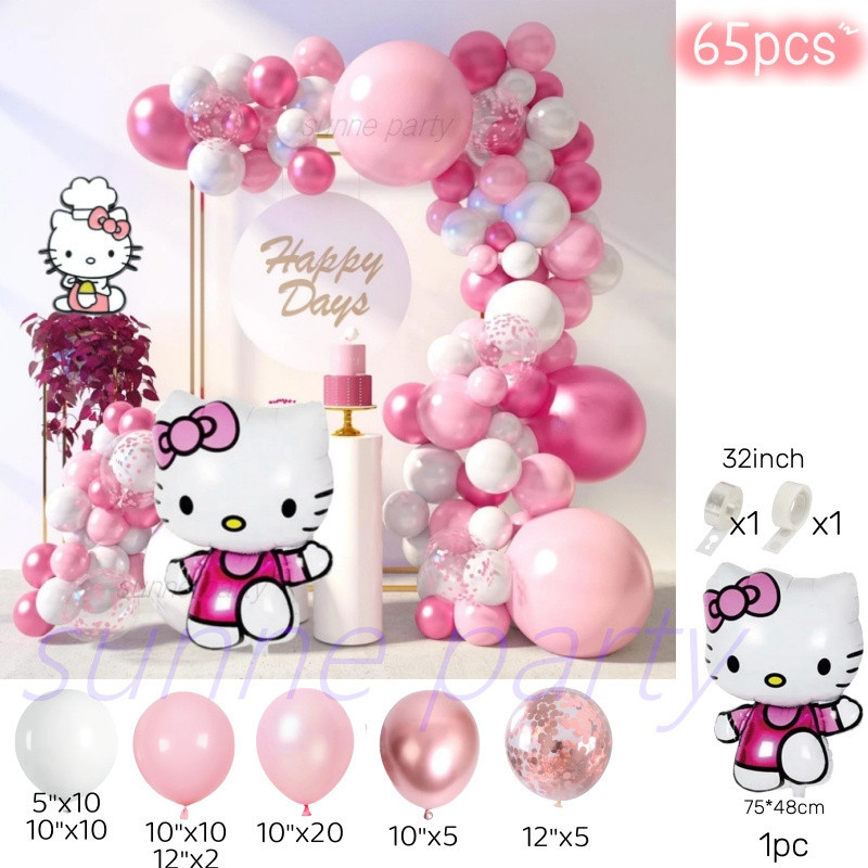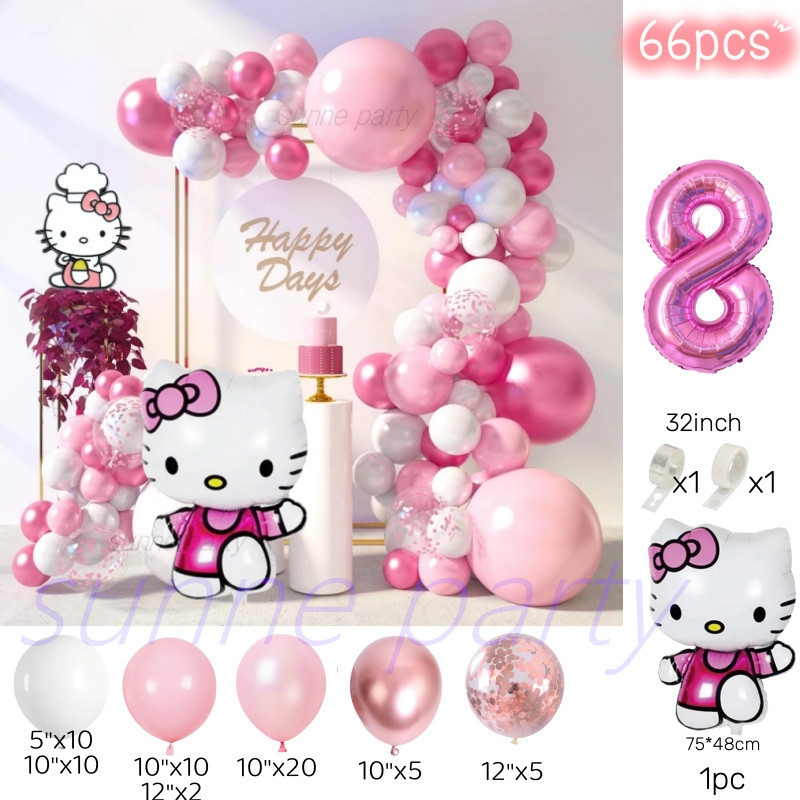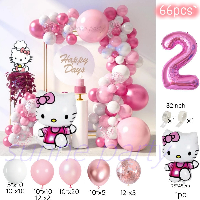 Hello Kitty Theme Balloons Garland Arch Kit Pink Kitty Cat Foil for Birthday Party Baby Shower