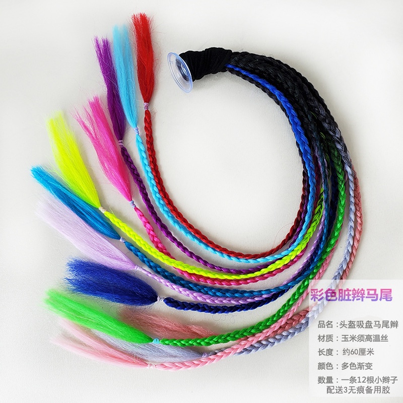 Helmet Braids Braiding Decoration Ponytails Gradient with Suction Cup