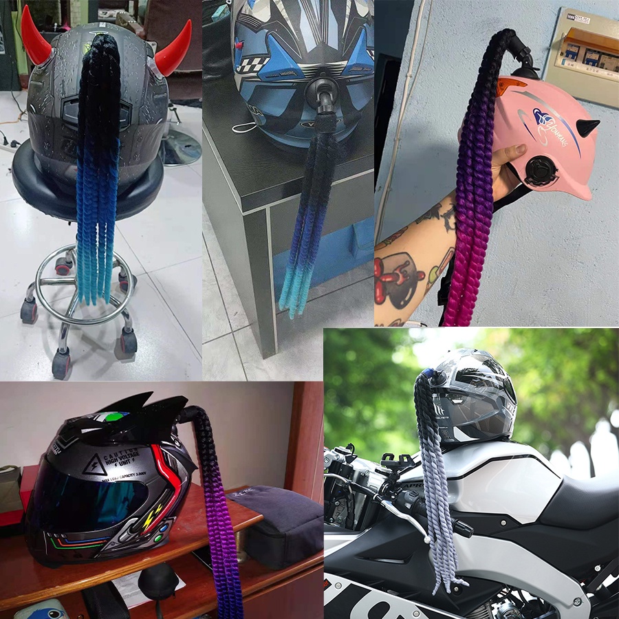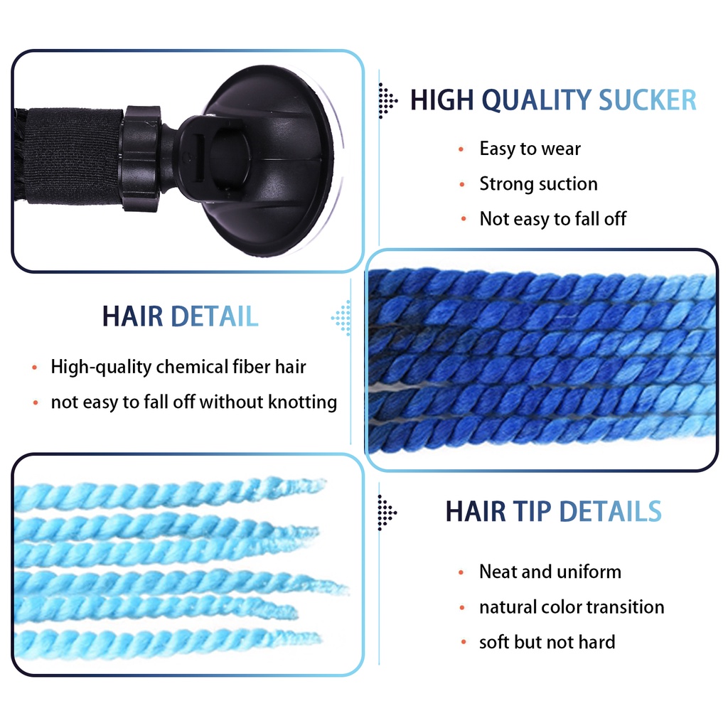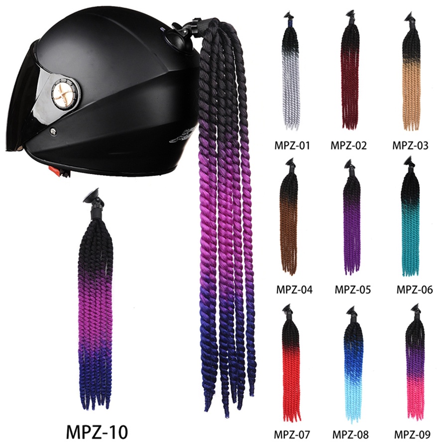 Helmet Dreadlocks Braid For Helmet Motorcycle Dreadlocks Dirty Braid Pigtail Gradient Synthetic Twist Braid Ponytail With Sucker