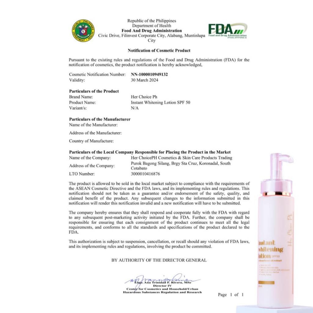 Her Choice Ph Instant Whitening Lotion with SPF50 -FDA Approved
