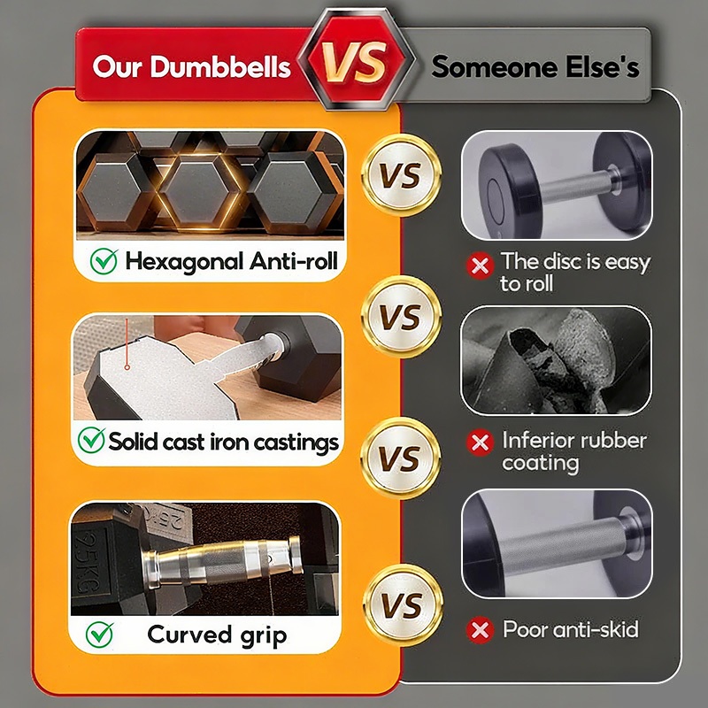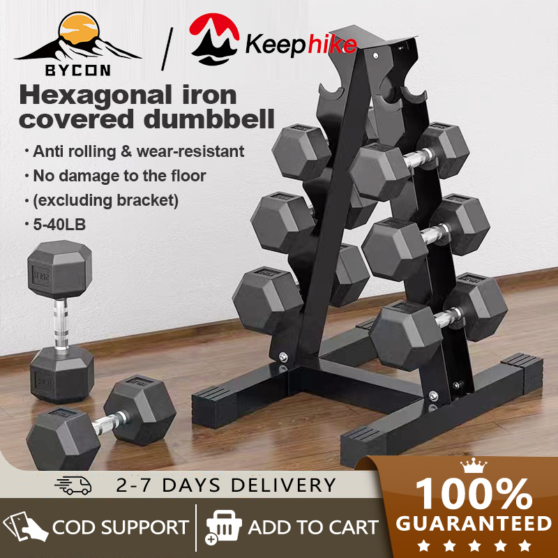 Hexagonal Dumbbells Men's Gym Iron Dumbbells 5/10/15/20/25/30/35/40LB Rubber Clad Cast Iron Dumbbell