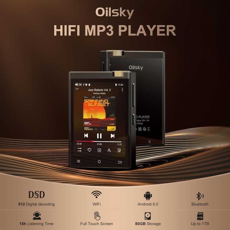 Hi-Fi Mp3 Player With Bluetooth And Wifi, Oilsky Lossless DSD High-Resolution Digital Audio With