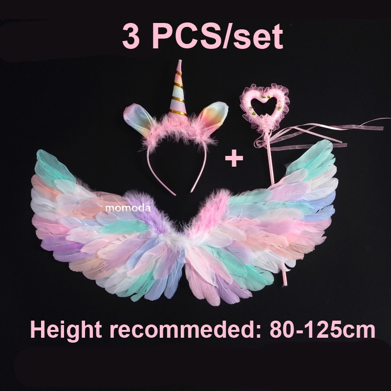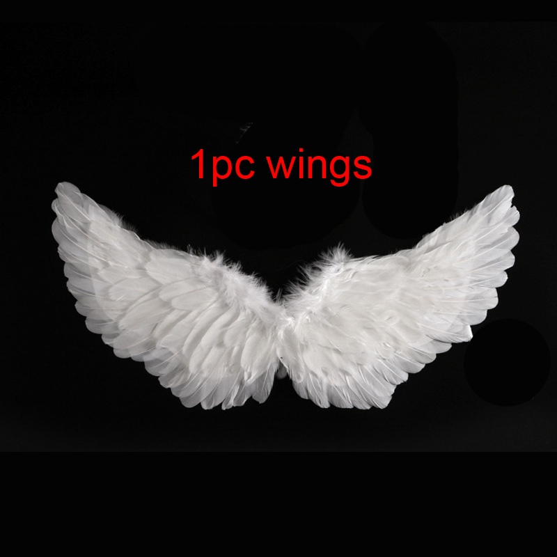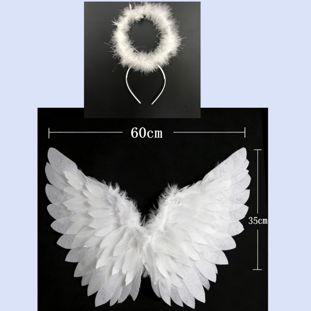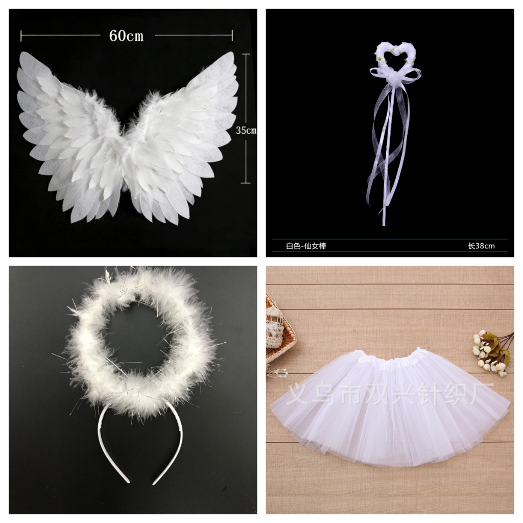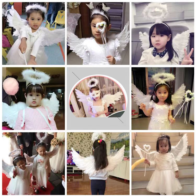 Hi-Kid Angel Wings for Kids Baby Girl Angel Costume White Feather Fairy Wings Wand Halo Skirt Cosplay Birthday Set Infant Halloween Photo Props Accessories