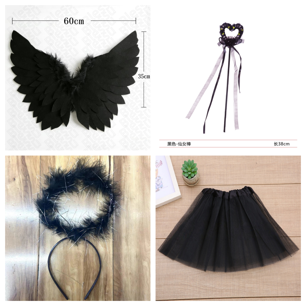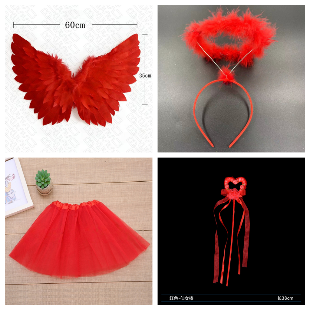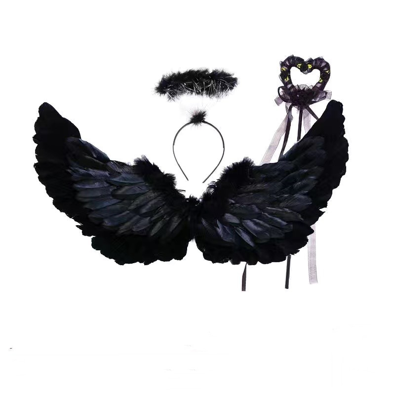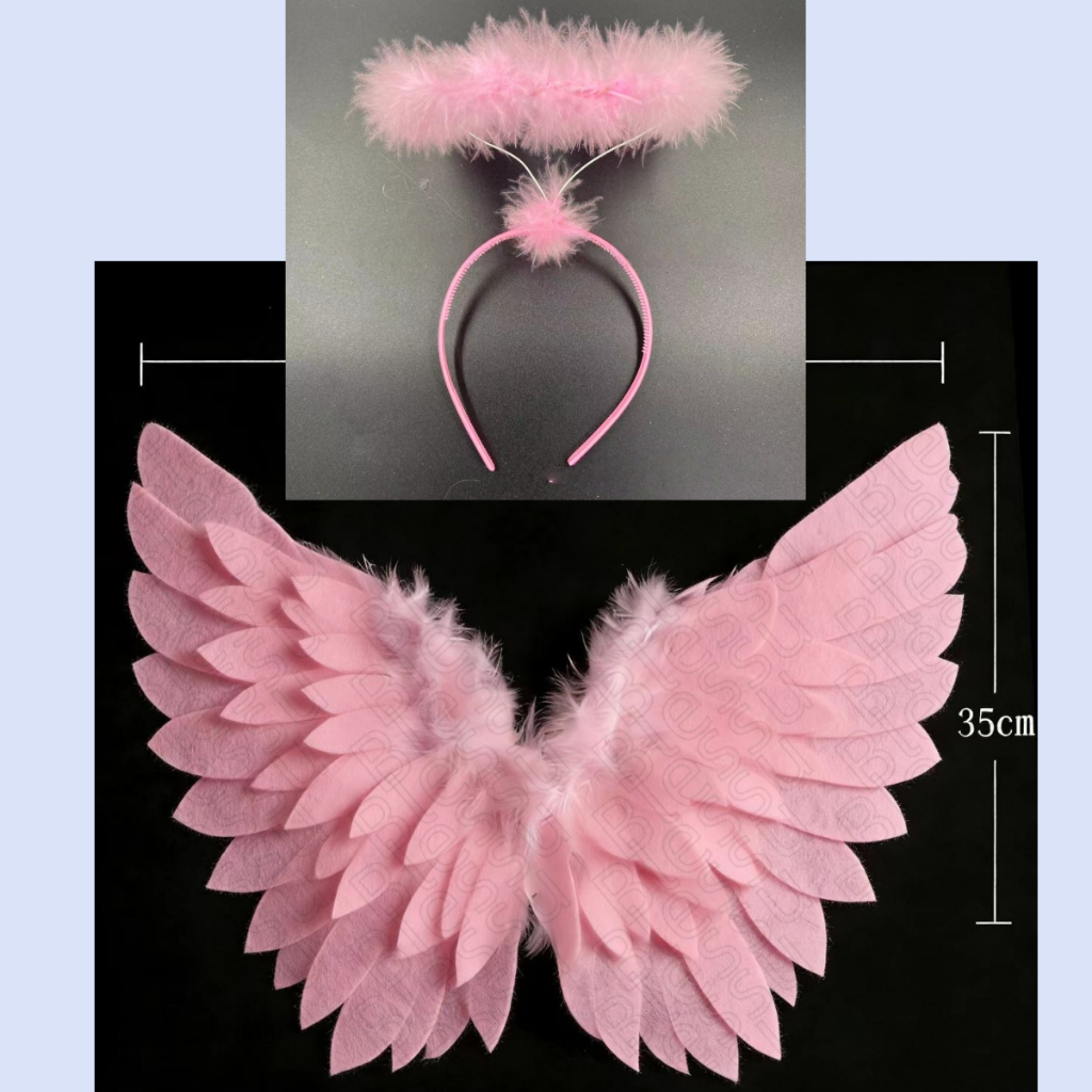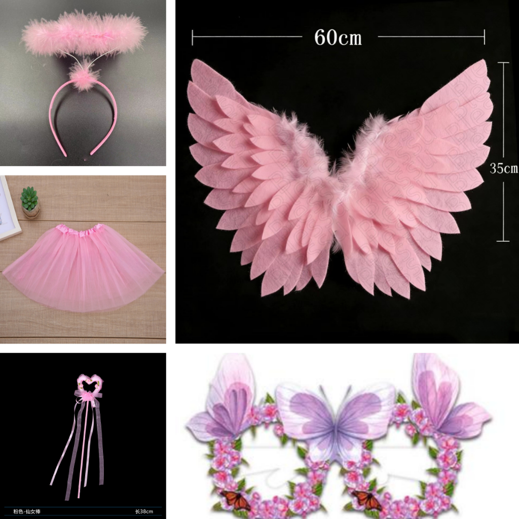 Hi-Kid Angel Wings for Kids Baby Girl Angel Costume White Feather Fairy Wings Wand Halo Skirt Cosplay Birthday Set Infant Halloween Photo Props Accessories