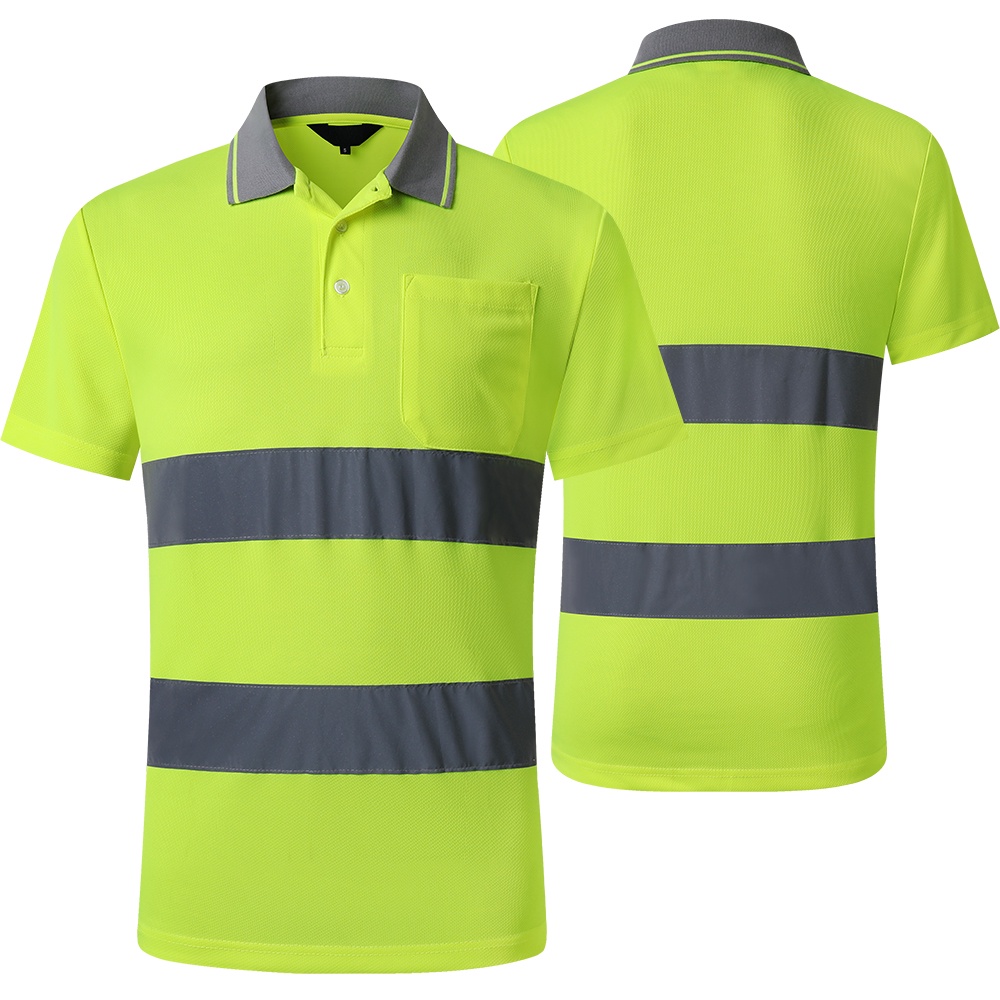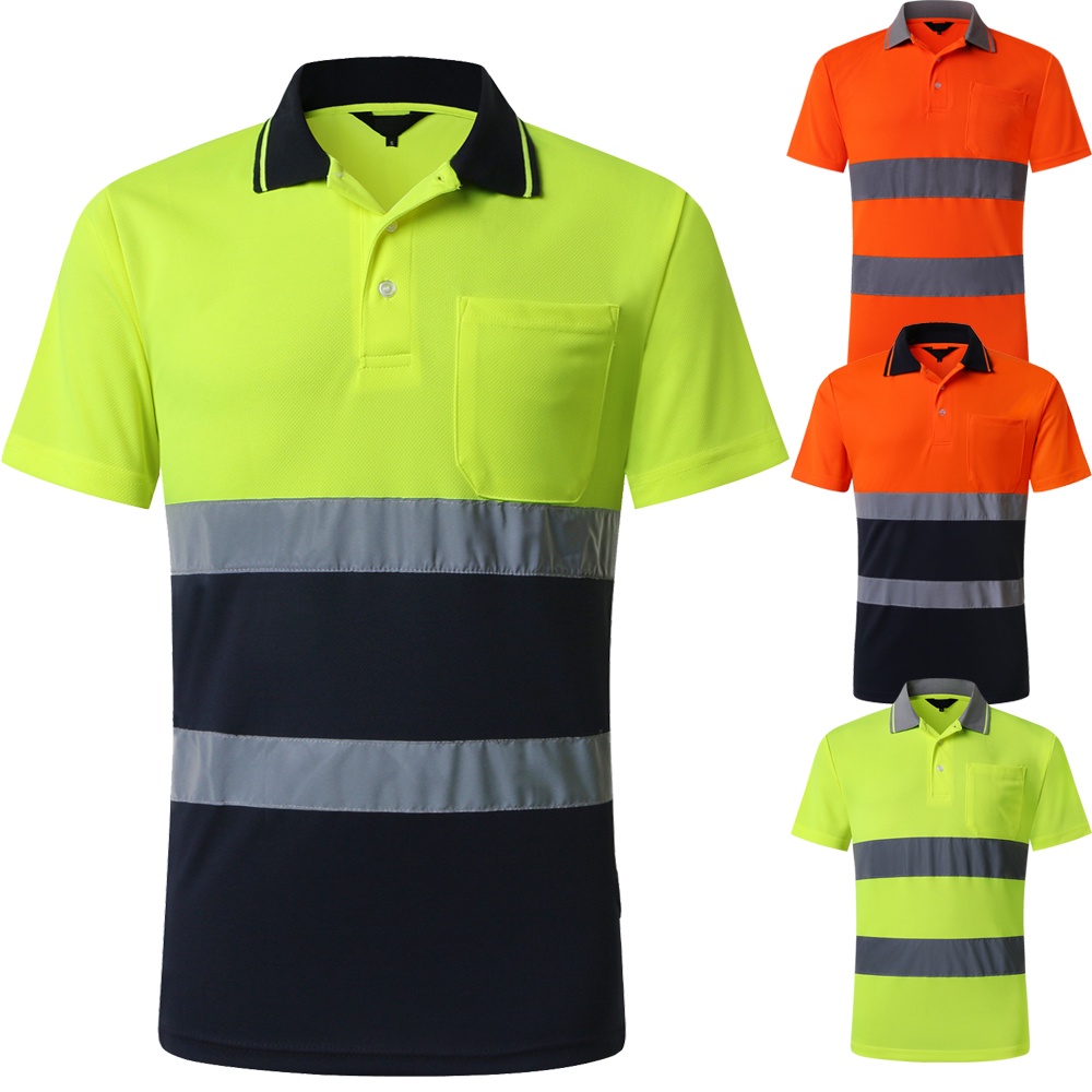Hi Vis Shirts Yellow Navy Long Sleeve Reflective Polo Shirt Safety Work Shirt for Construction Men and Women
