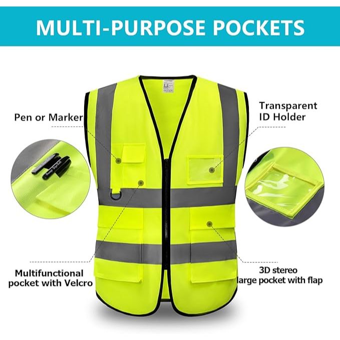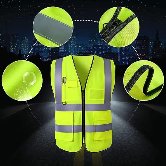 Hi Vis Vests for Men Women with Multi Pockets High Visibility Reflective Safety Security Vest with Reflective Strip