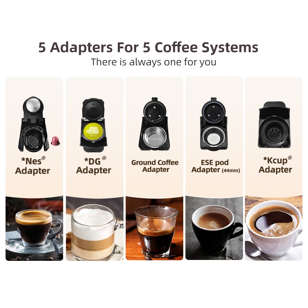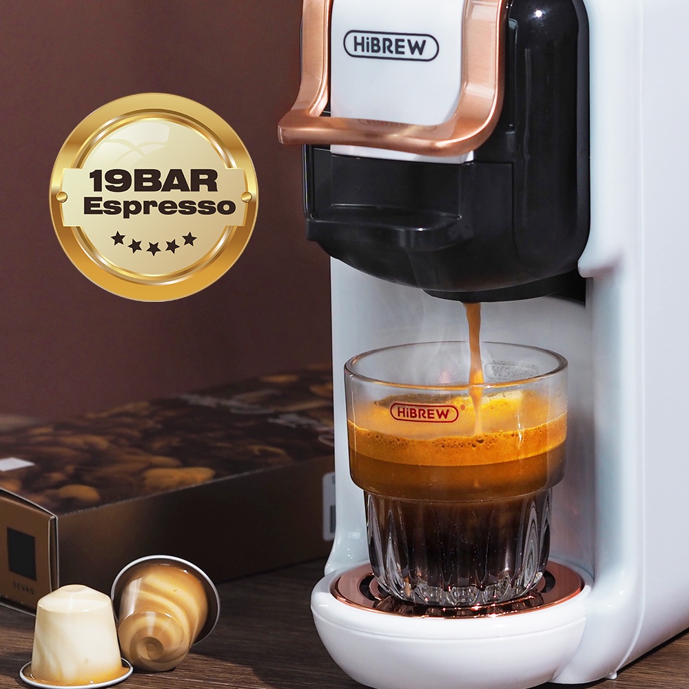 HiBREW 5 in 1 Capsule Coffee Machine Hot/Cold compatible DG Milk NS kcup Capsule 19Bar 7 levels wate