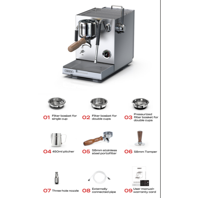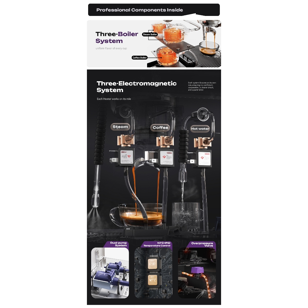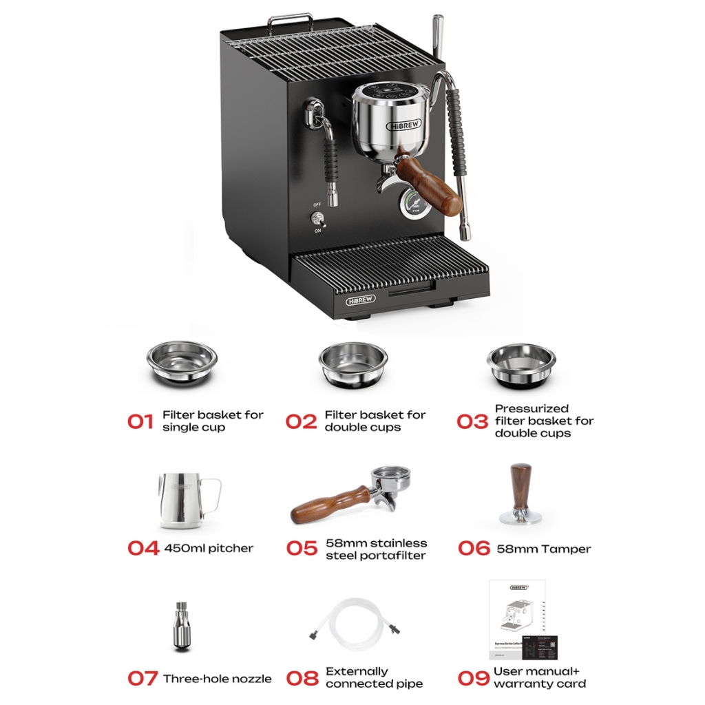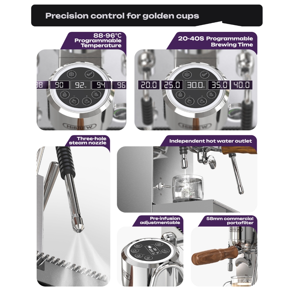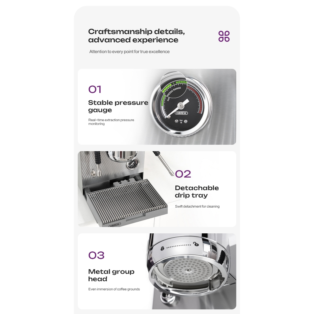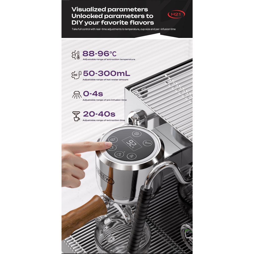 HiBREW H21 Coffee Maker 58mm Handle 15Bar Three Boilers 2Pump Semi-Automatic Espresso&Americano Milk Frother
