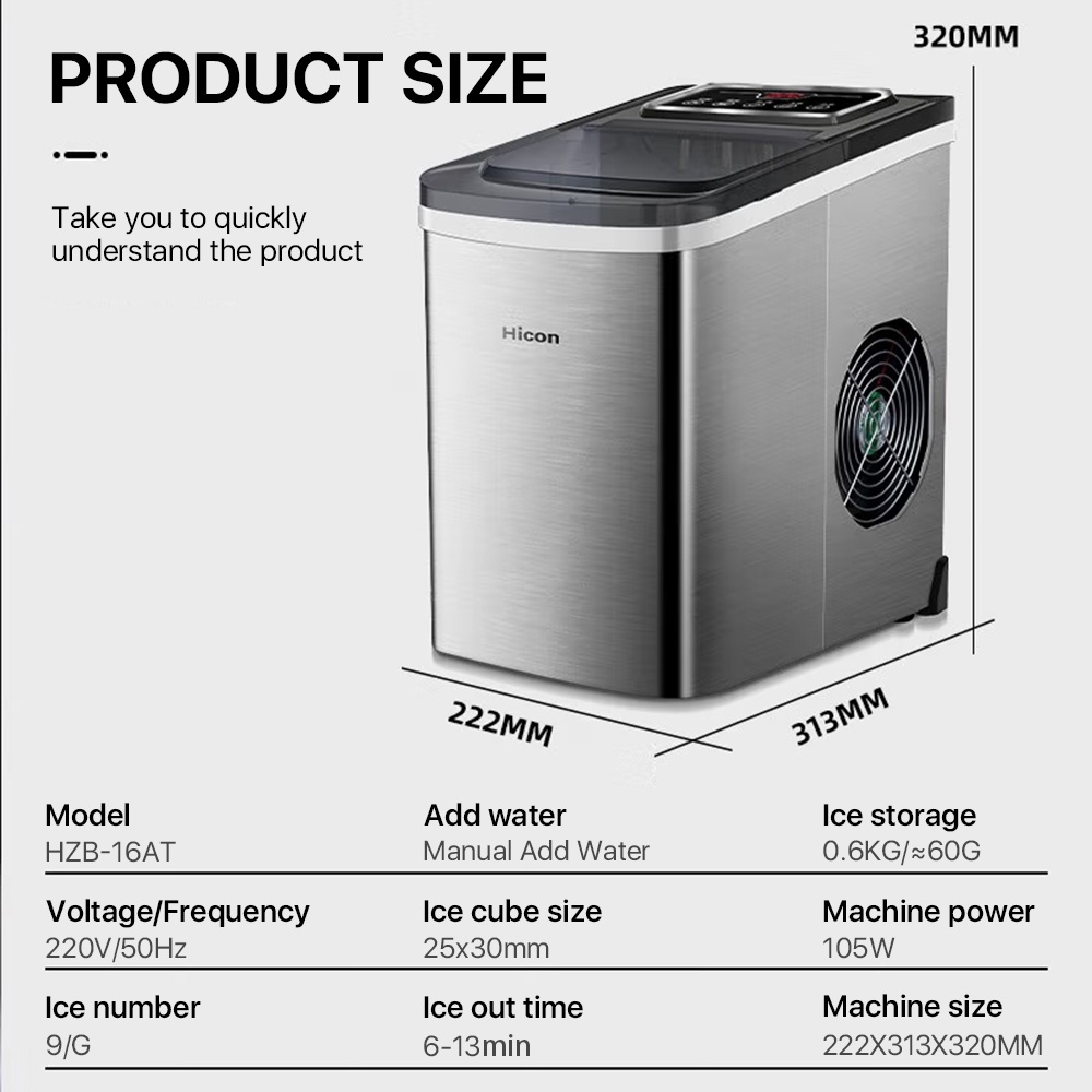 Hicon Automatic Ice Maker Machine Fast Portable Household Intelligent Ice Cube Maker Ice Molder