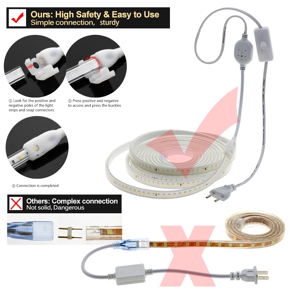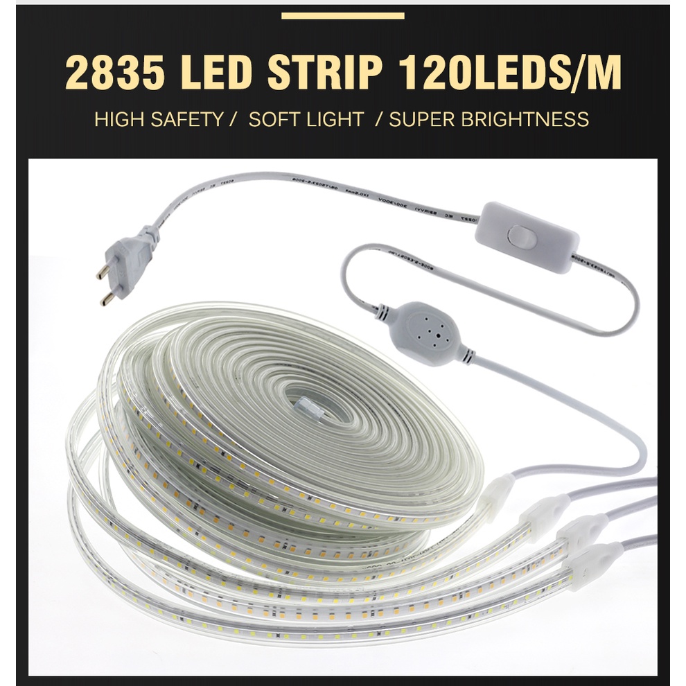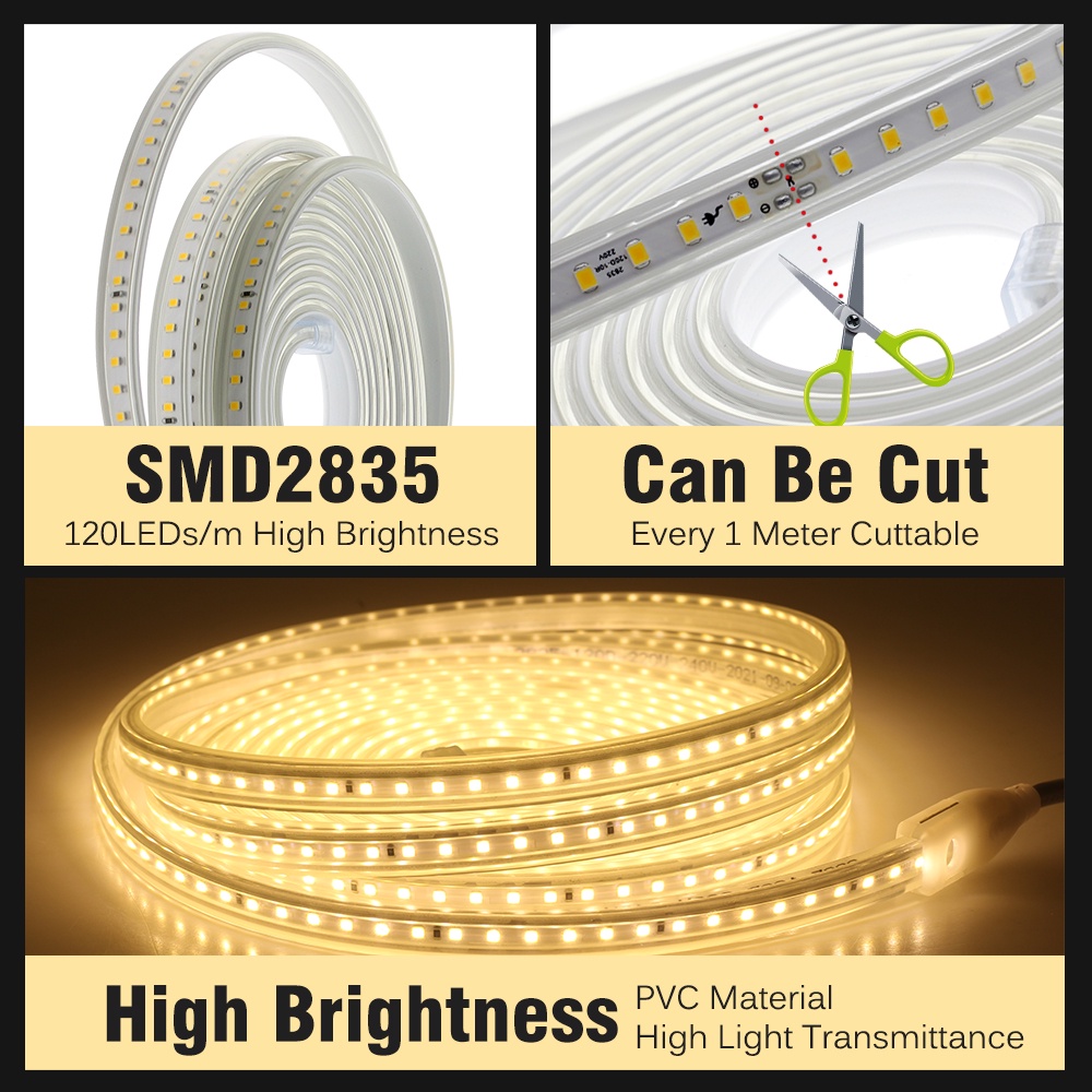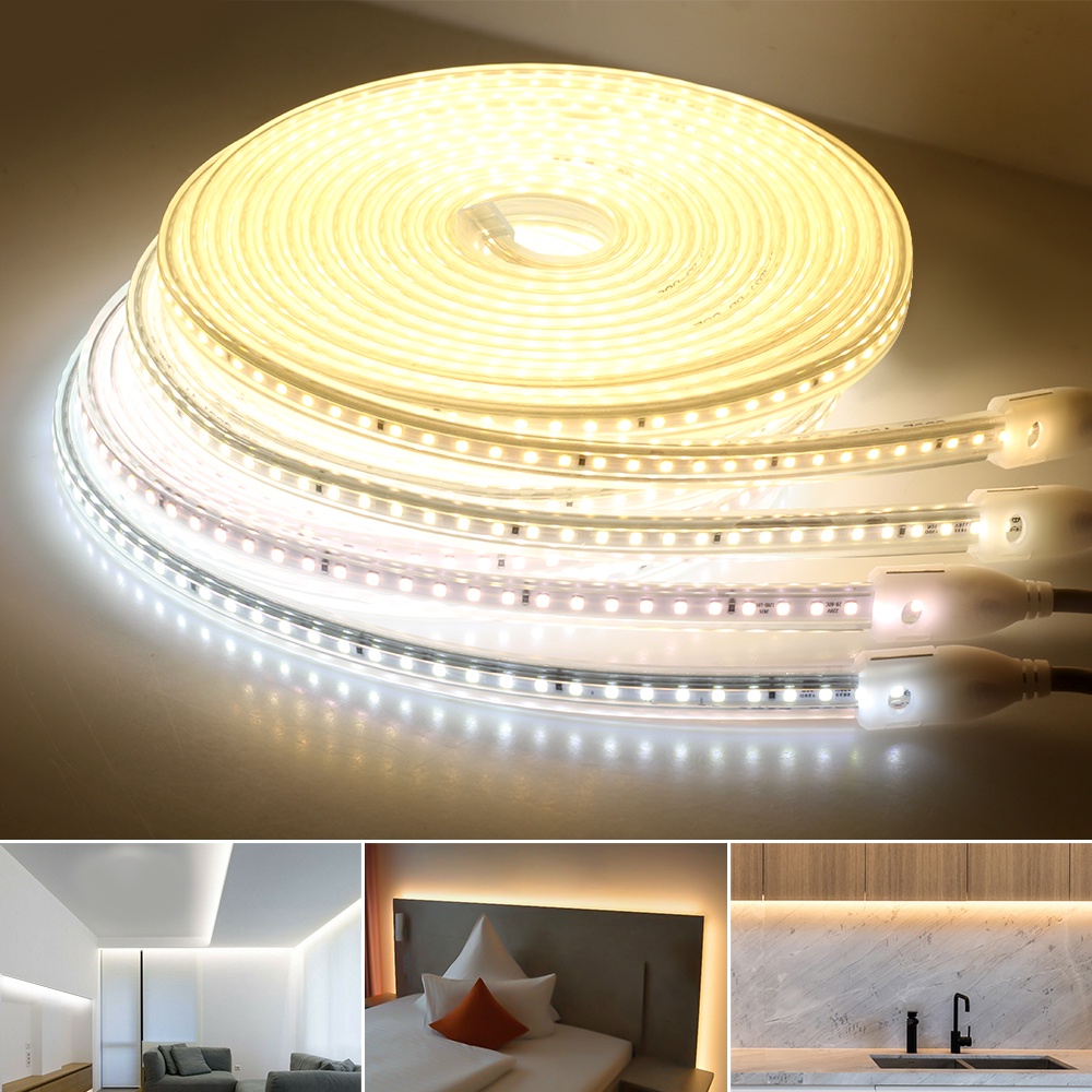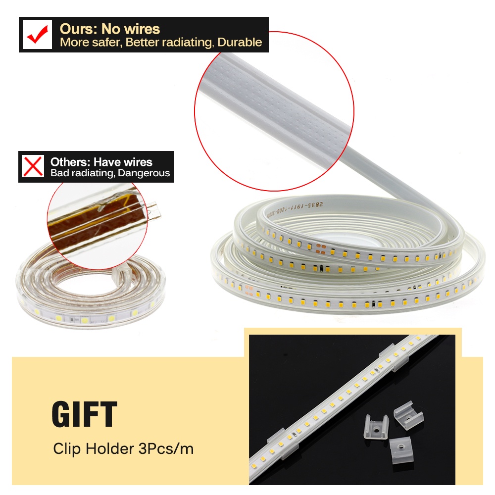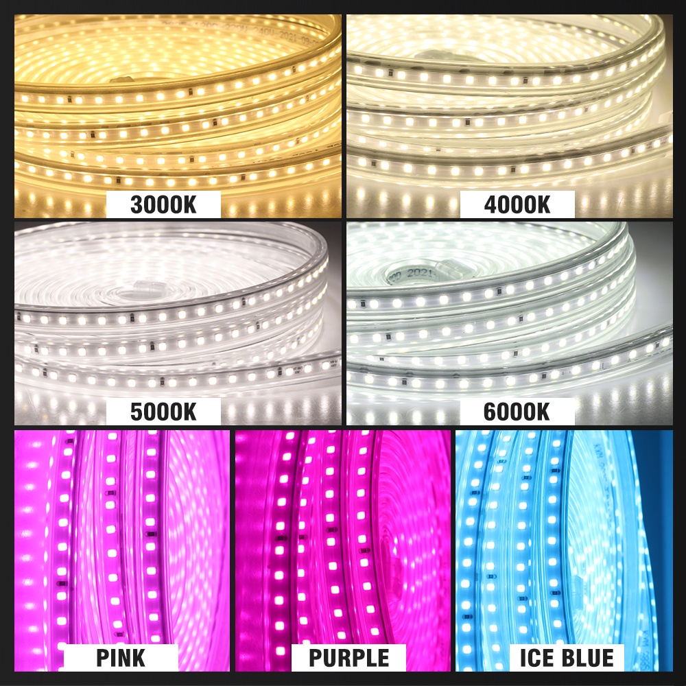 High Brightness 120LED/m LED Strip Light 1-8M 220v IP67 Waterproof Flexible LED Light Strip White/warm White/Pink/Purple/Ice Blue Neon Lights Home Decor with 1m Plug