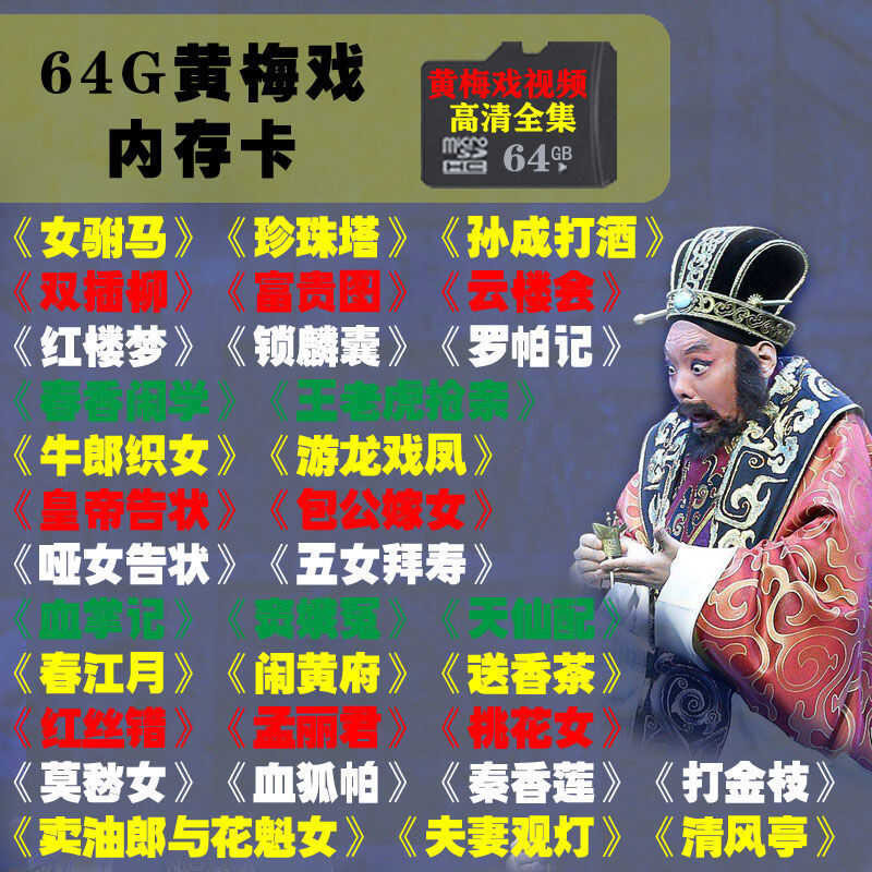 High Definition Huangmei Video USB Flash Drive Car Mounted Singing Hine 64G Memory Full Set TF Card