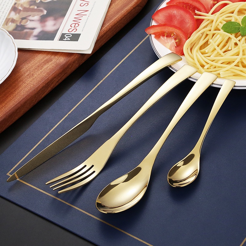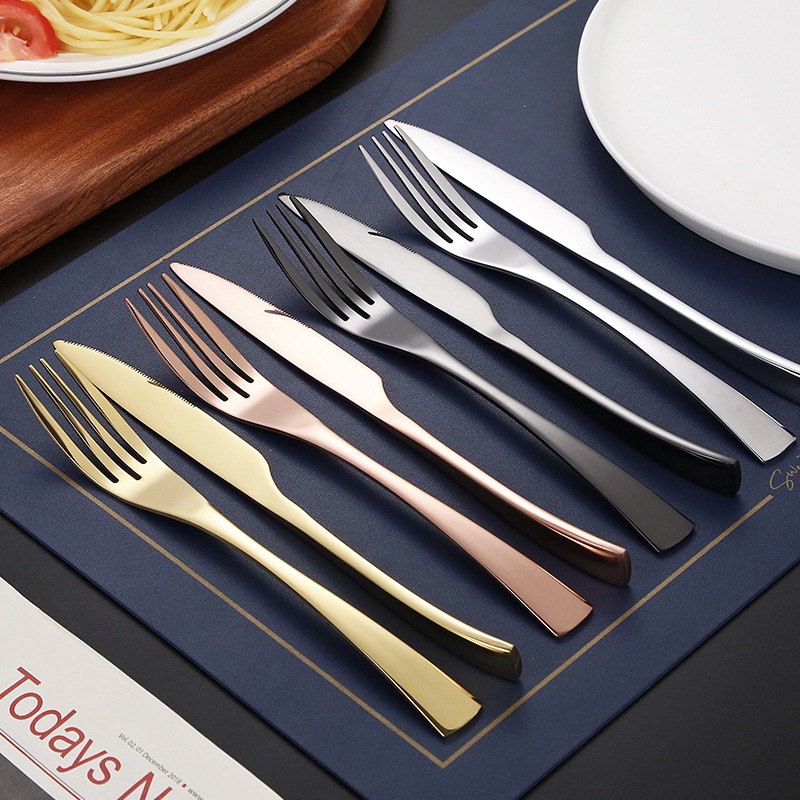 High-End Tableware 430 Stainless Steel Material Household Nordic Style Simple Design Mirror Spoon Fork Western Four-Piece Set
