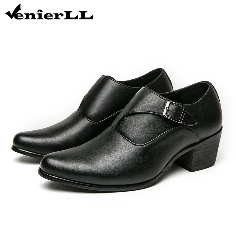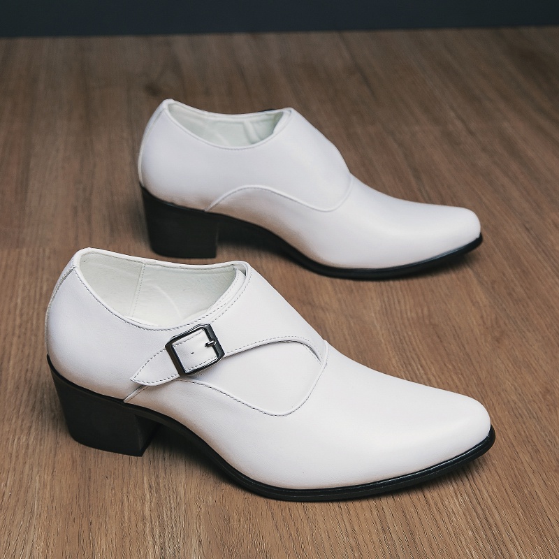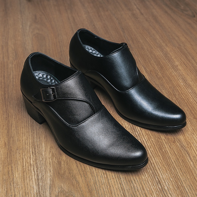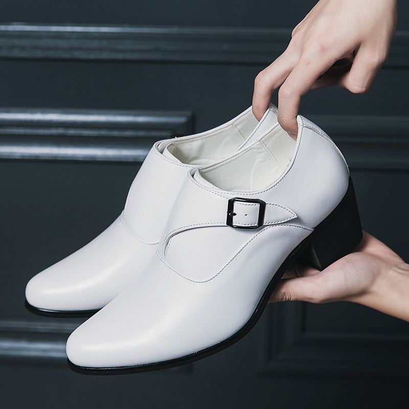 High Heel Shoes Men Wedding Banquet Pointed Toe Shoes Formal Men's Shoes Cuban Shoes Men's Leather Shoes Wedge Leather Shoes Men's Fashion Groom Wedding Shoes Thick-Soled Heightening Leather Shoes