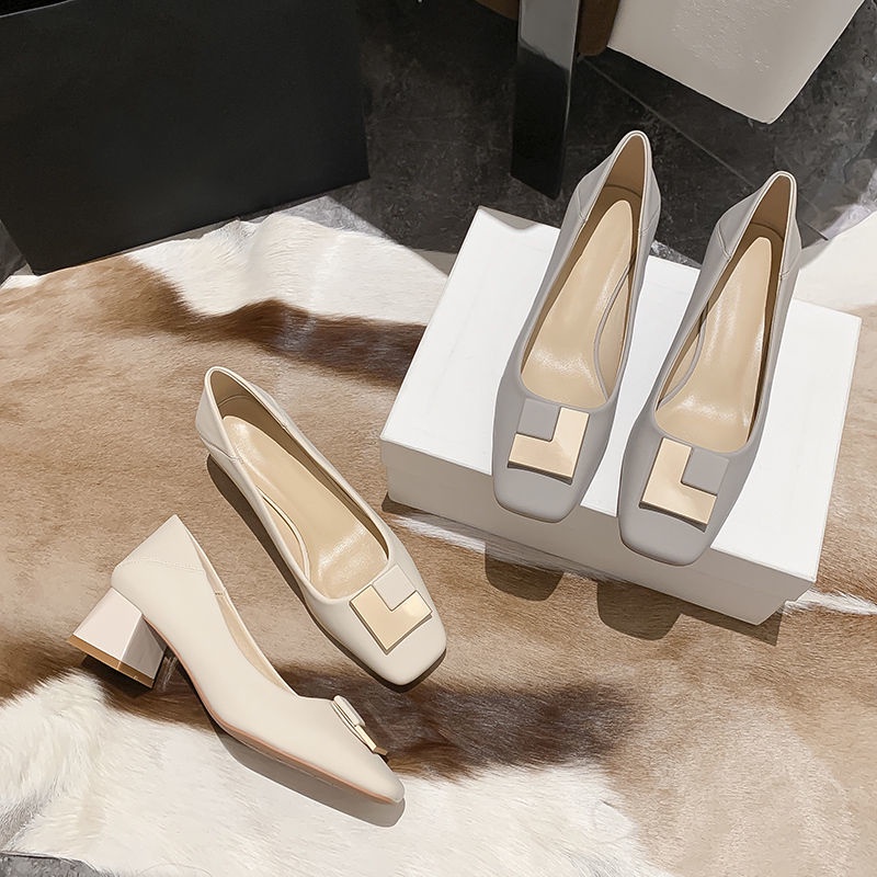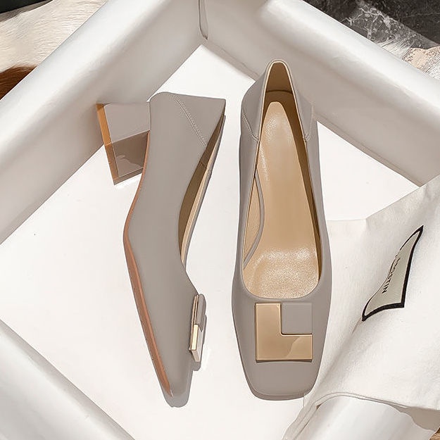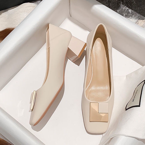 High Heel Shoes Square Toe Chunky Heel Women2022Fashion Work Shoes