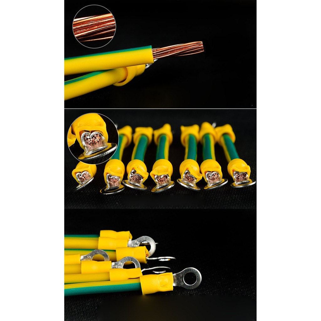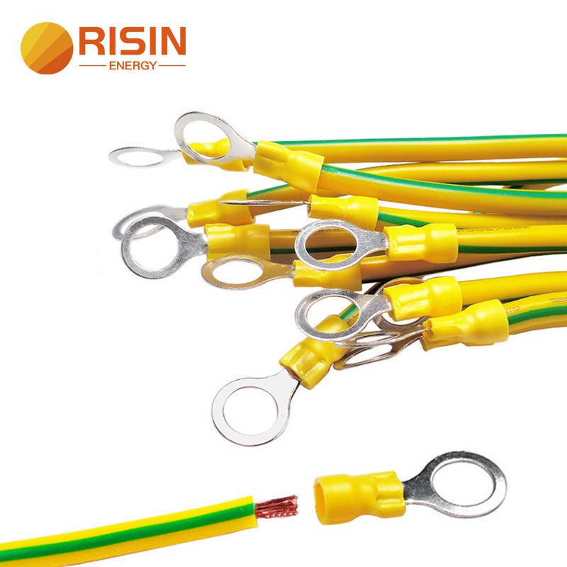 High Performance RISIN Solar PV Module Earthing Jumper BVR Yellow Green Grounding Earthing Cable With Both End Crimped Lug