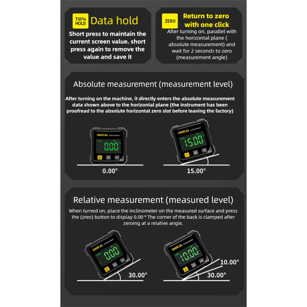 Digital Angle Finder with Electronic Laser - 4-side Strong Magnetic Angle Gauge, Cube Inclinometer