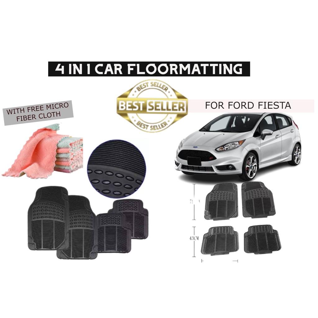 High Quality 4 in 1 Car Floor Foot Matting Rubber FOR FORD FIESTA With Free Micro Fiber Cloth