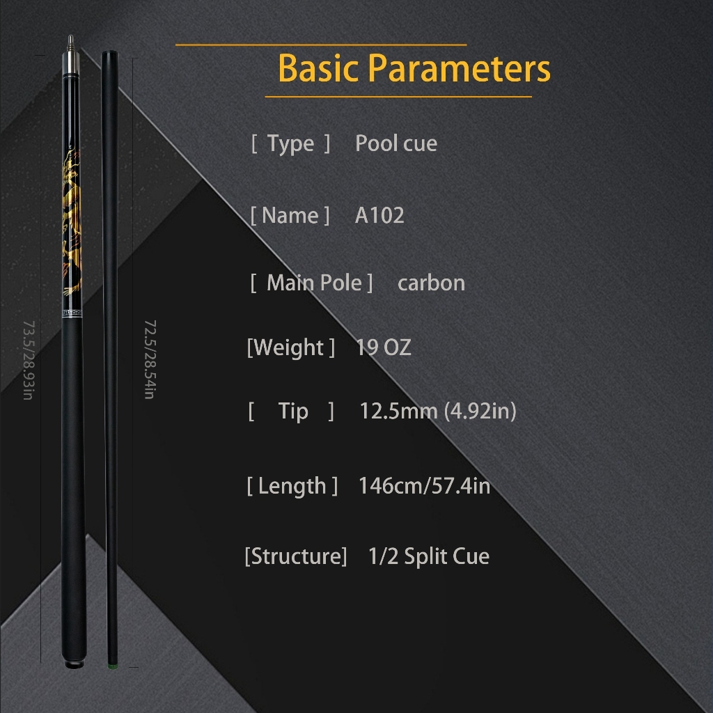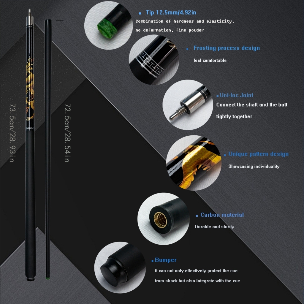 High-Quality Composite Carbon Carom Billiards Cue Stick with Elegant Gold Dragon Design - Perfect