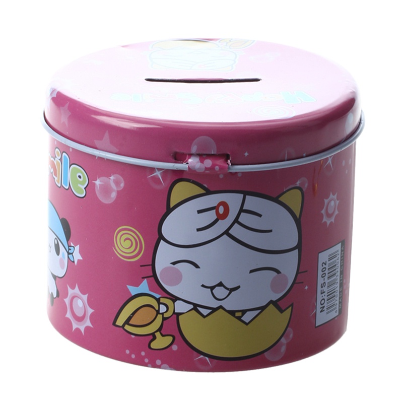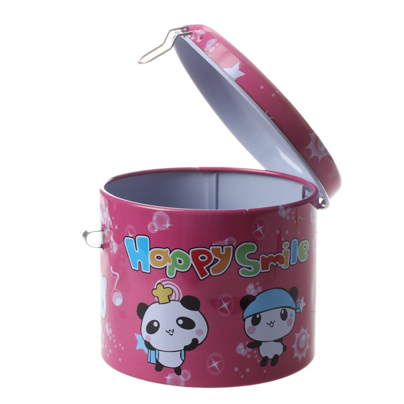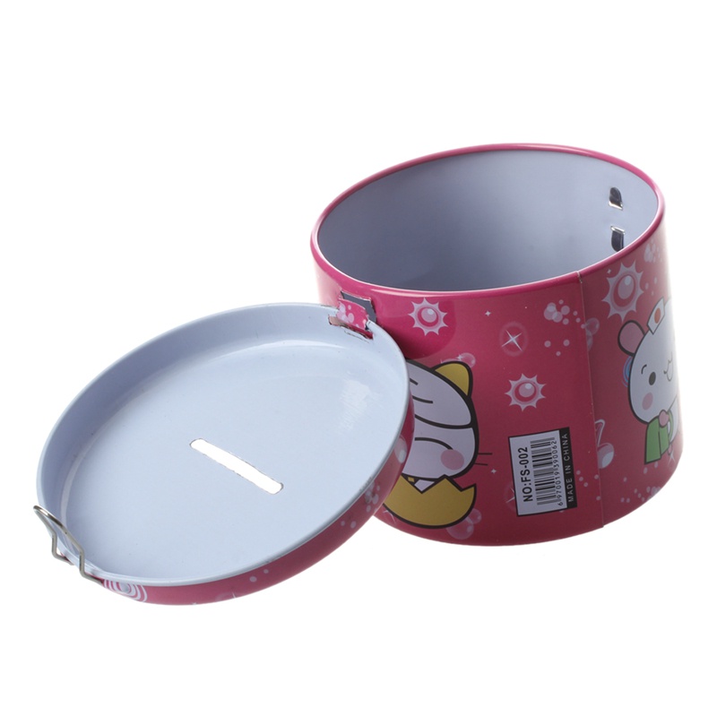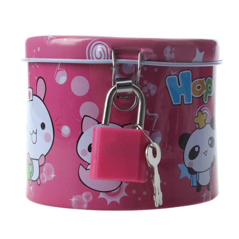 High Quality Cylinder Design Cartoon Print Piggy Bank Coin Money Saving Box w Padlock