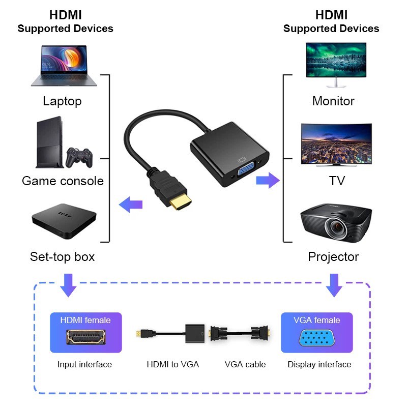 High Quality HDMI Male to VGA Female Adapter Cable 1080P Converter for HDTV/Monitor/Projector/PC