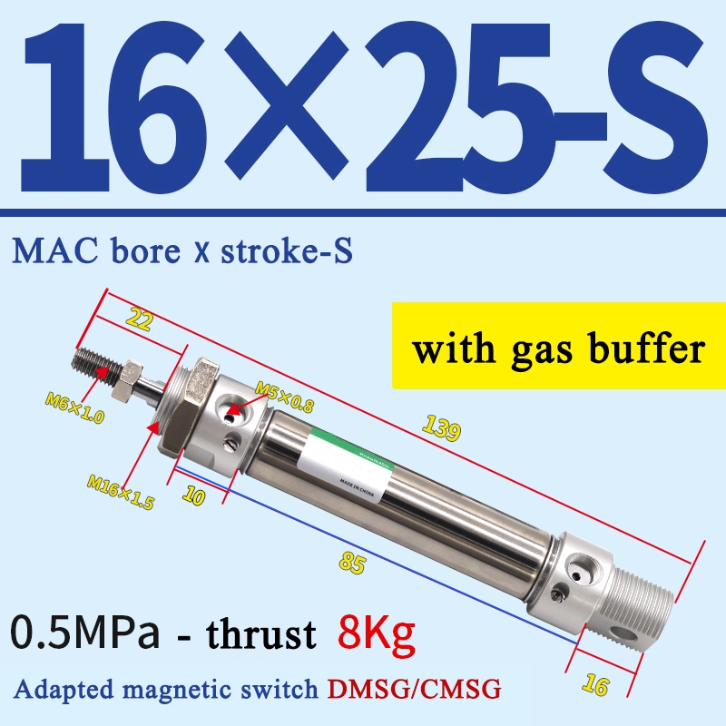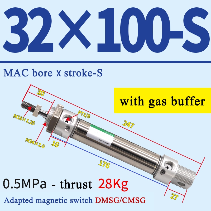 High Quality MAC Pneumatic Cylinder With Gas Buffer Air Cylinder MAC Series Mini Stainless Steel Pneumatic Cylinder MAC16/20/25/32/40-25X50X75X100S