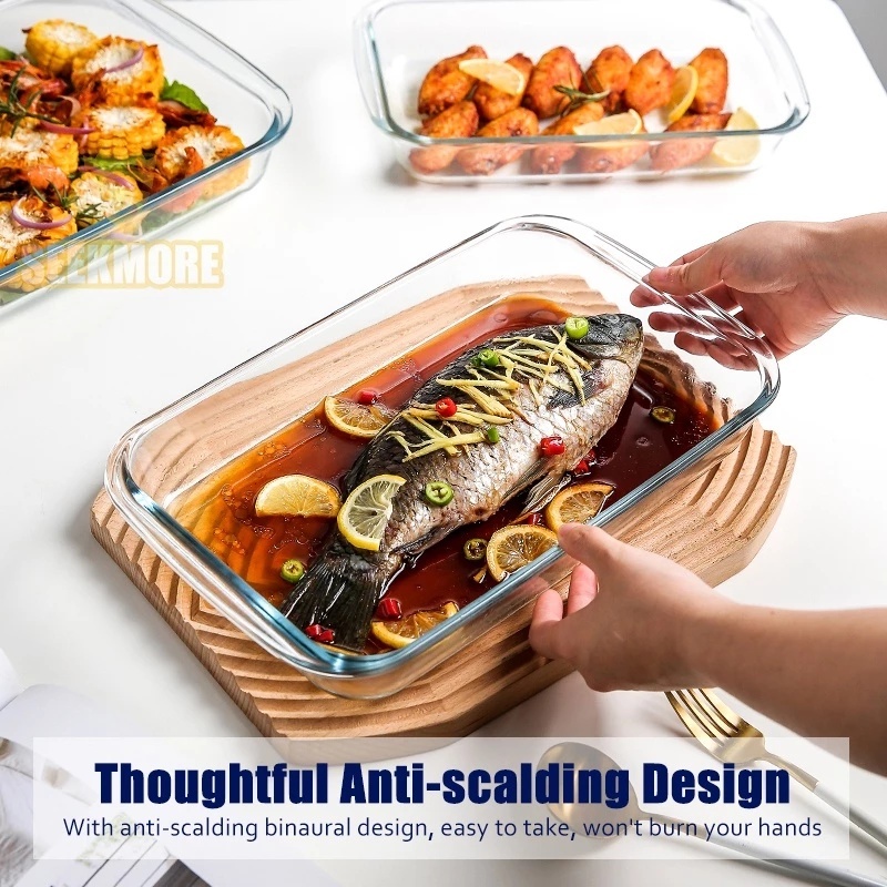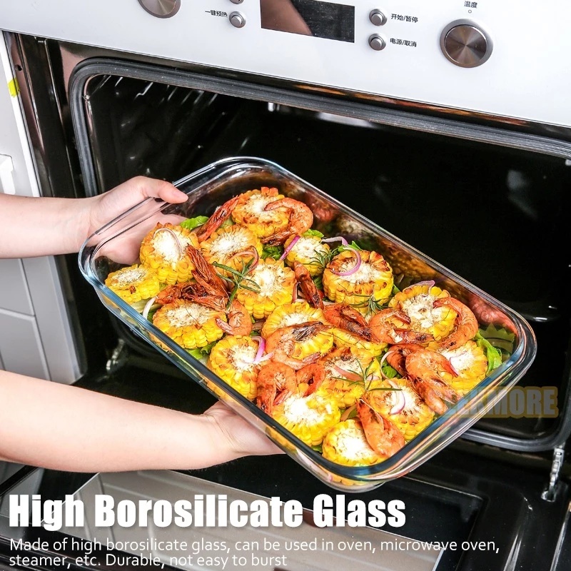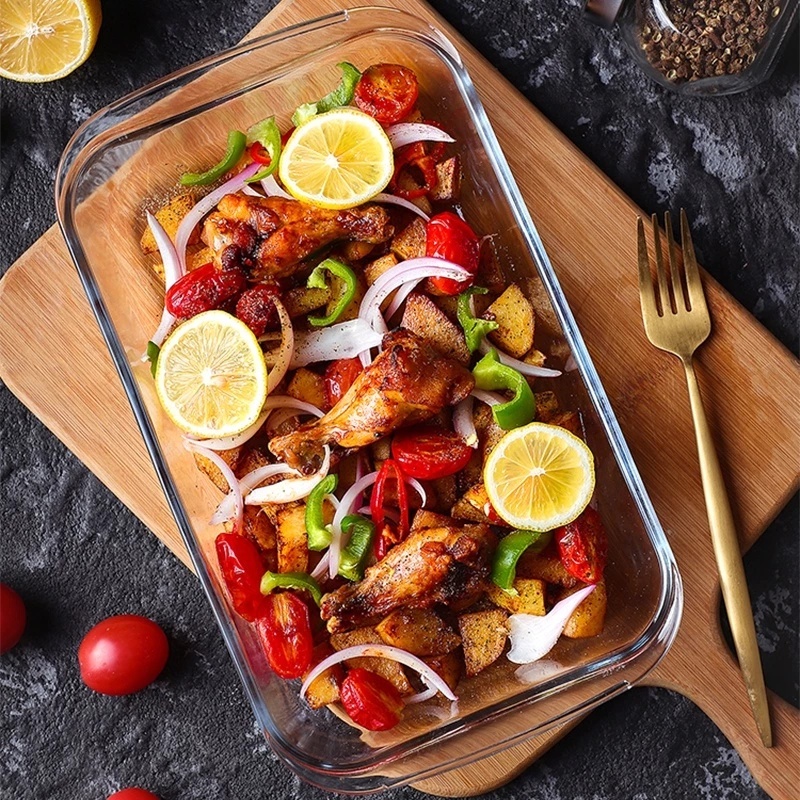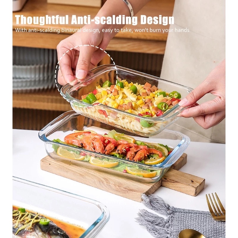 High Quality Microwaveable Rectangular Tempered Borosilicate Glass Baking Tray Storage Tray With Handle Microwave & Oven