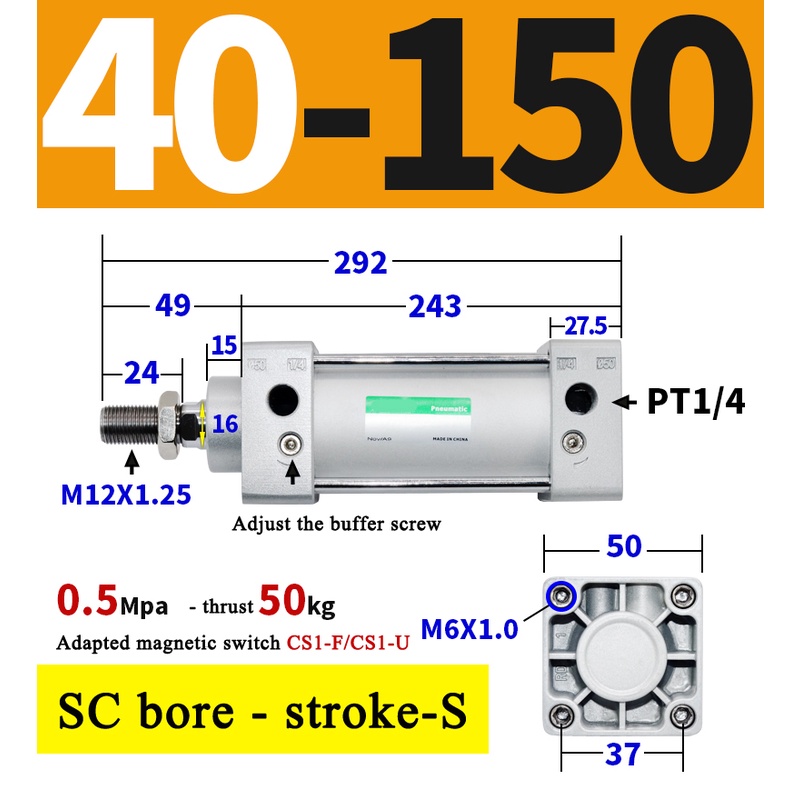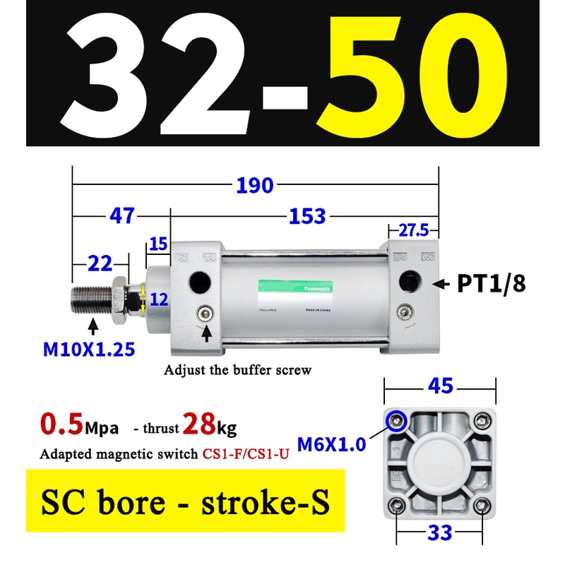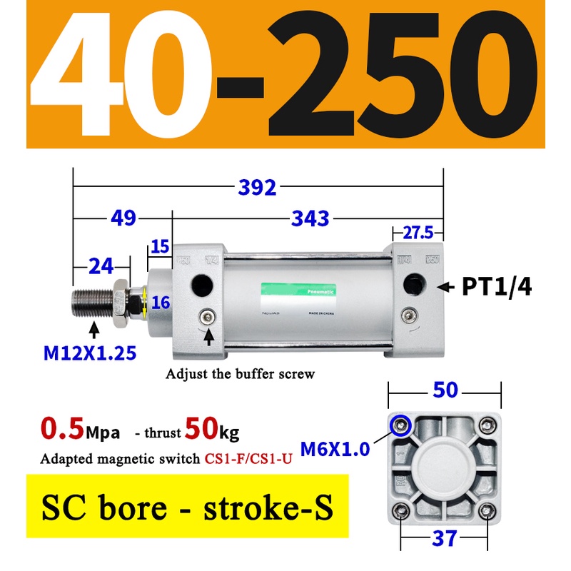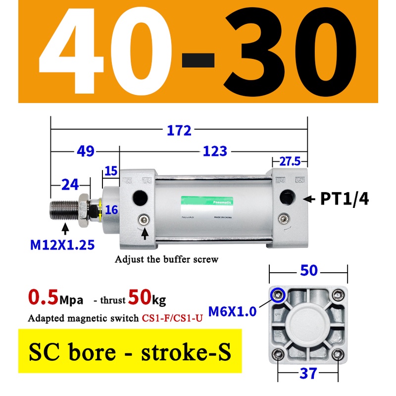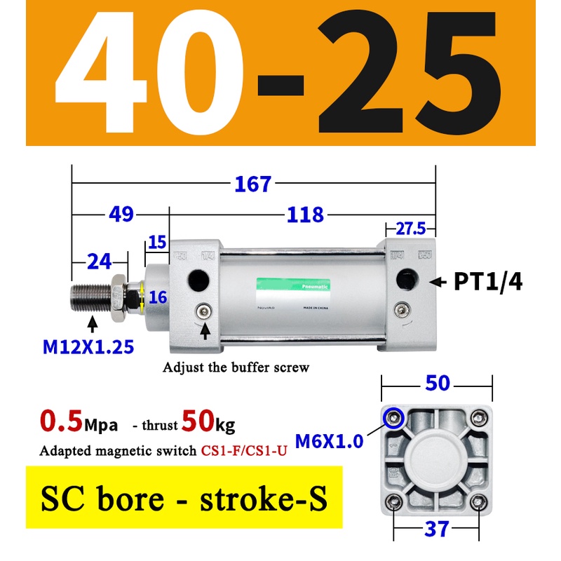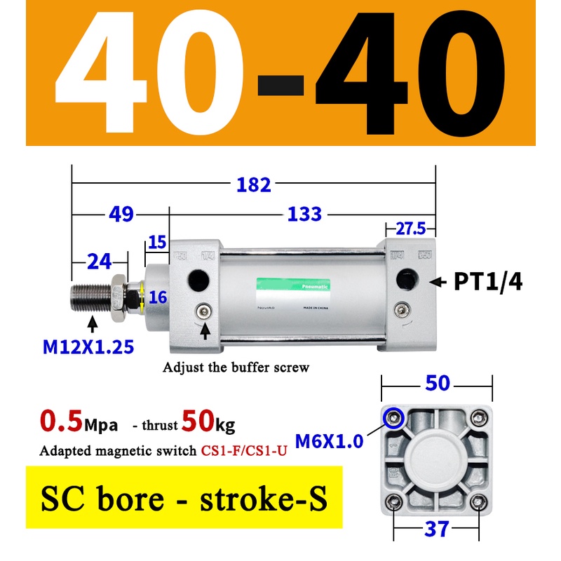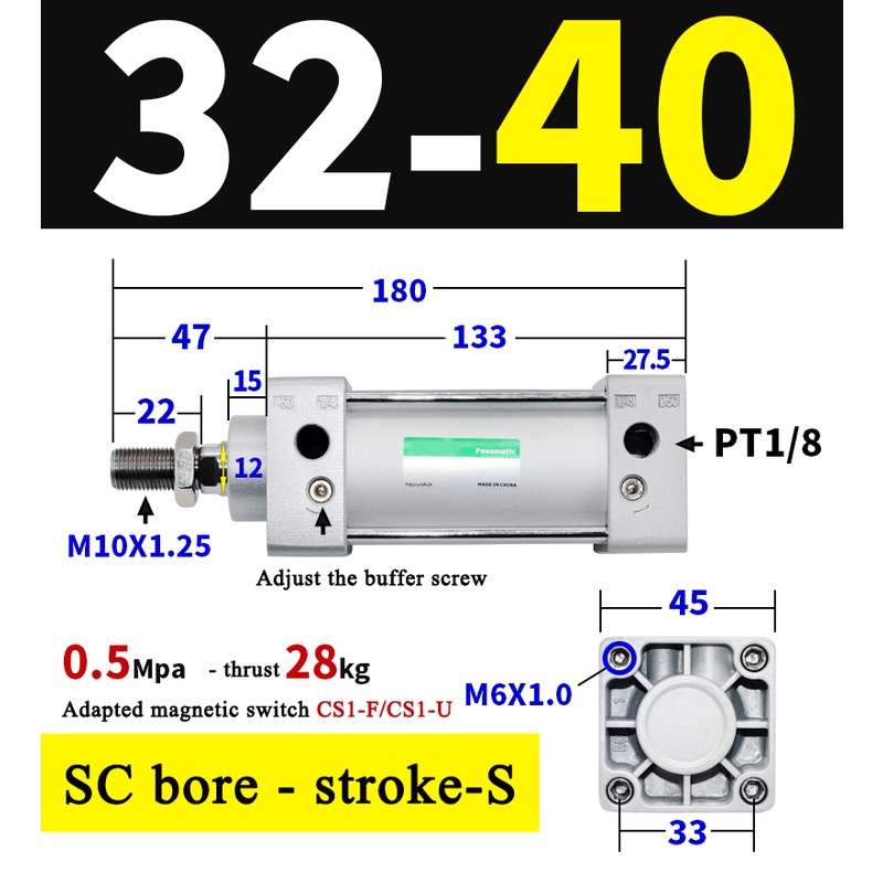 High Quality SC Pneumatic air Cylinder SC Series Economy model 32mm 40mm Bore Standard Cylinder ,SC Cylinder , SC Pneumatic Cylinder SC32/40-25X50X75X100X125X150X200X250S