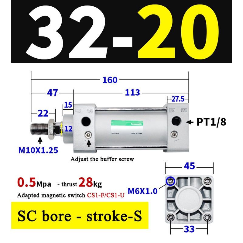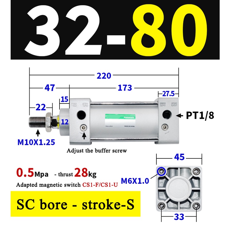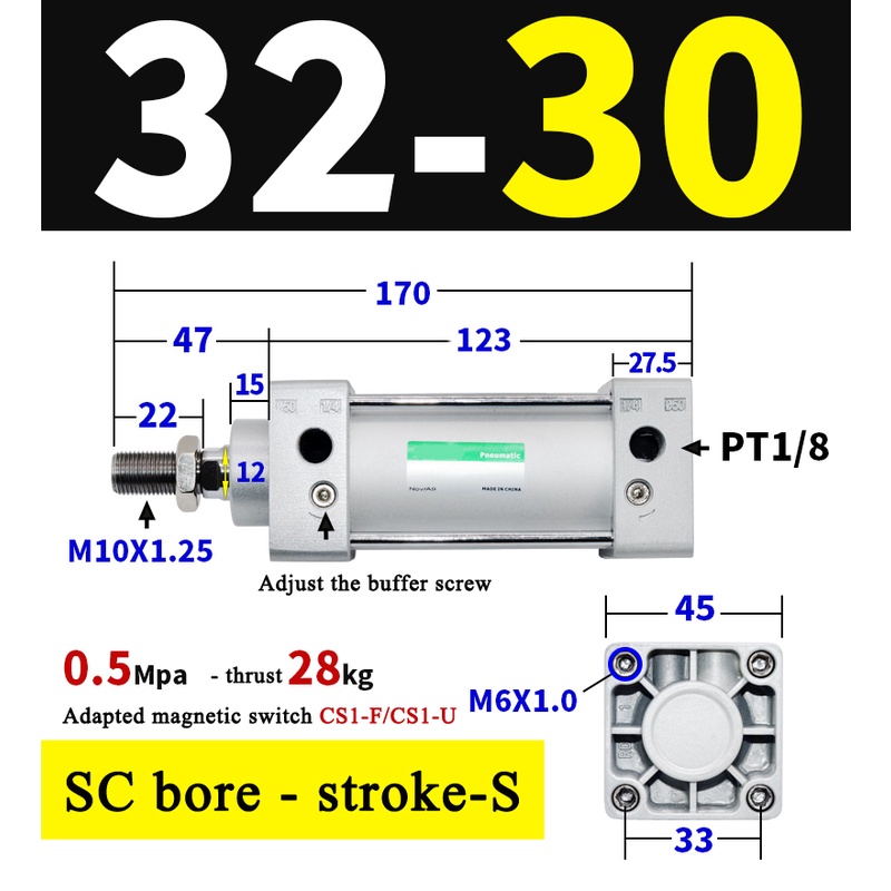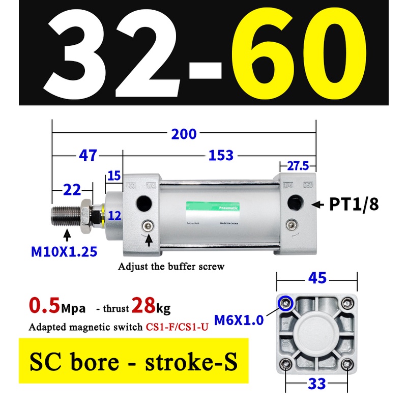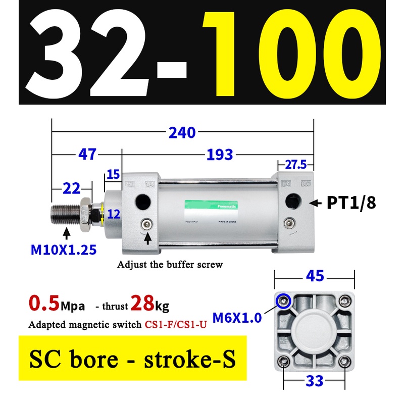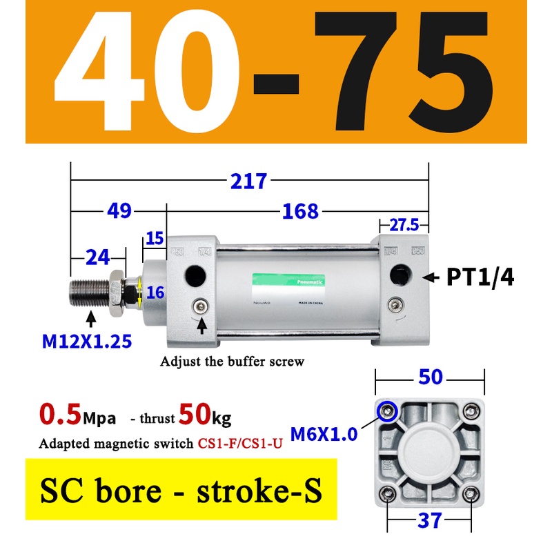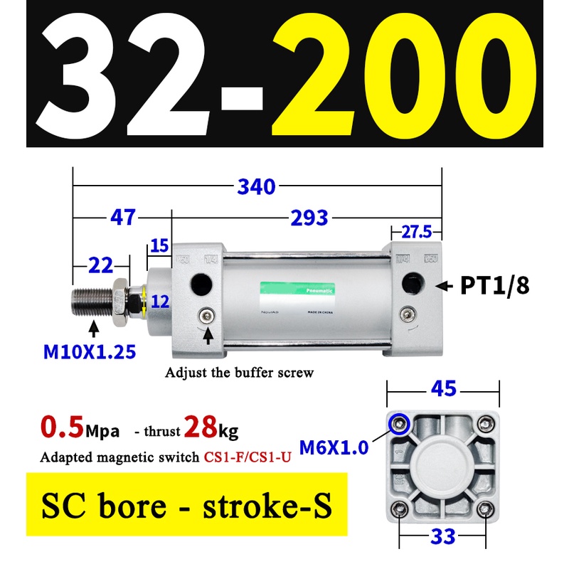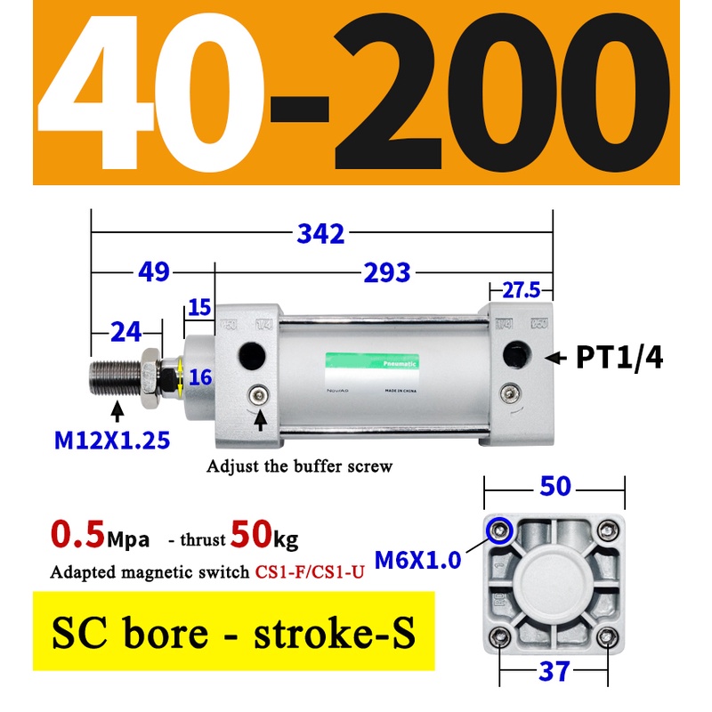 High Quality SC Pneumatic air Cylinder SC Series Economy model 32mm 40mm Bore Standard Cylinder ,SC Cylinder , SC Pneumatic Cylinder SC32/40-25X50X75X100X125X150X200X250S
