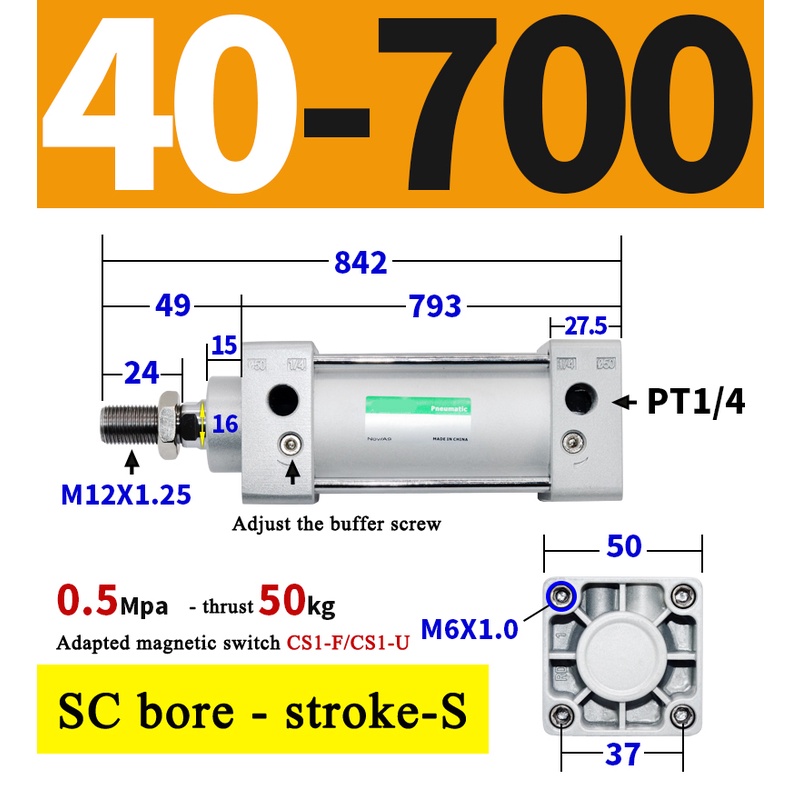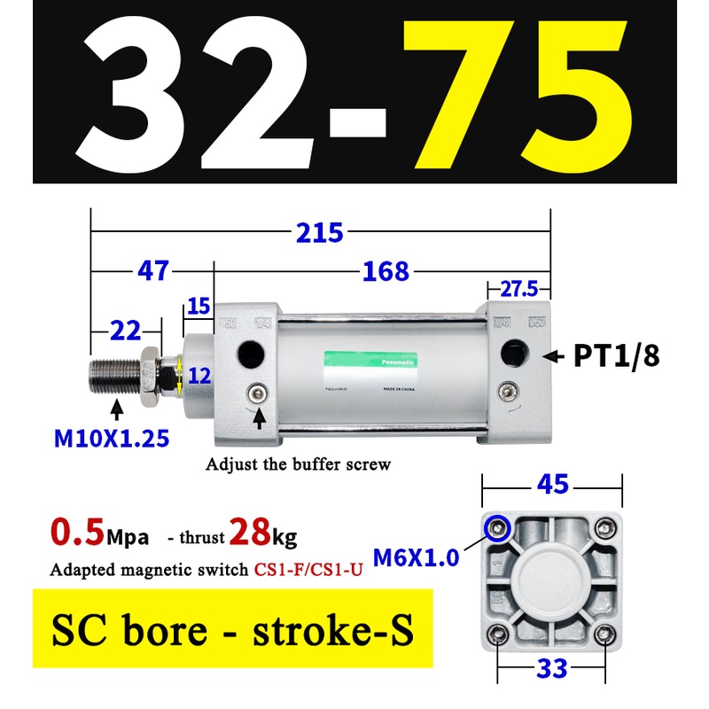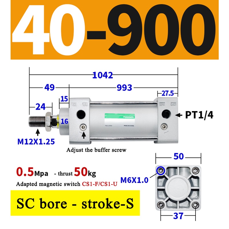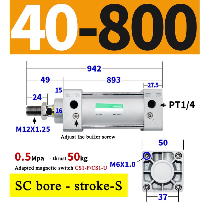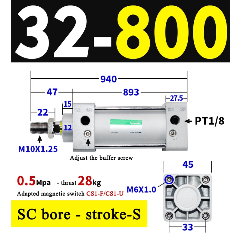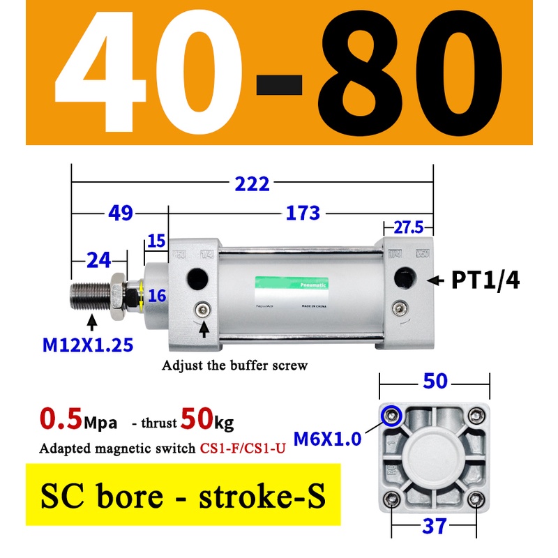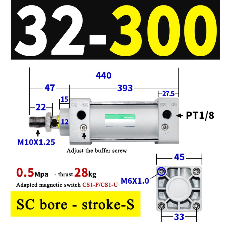 High Quality SC Pneumatic air Cylinder SC Series Economy model 32mm 40mm Bore Standard Cylinder ,SC Cylinder , SC Pneumatic Cylinder SC32/40-25X50X75X100X125X150X200X250S