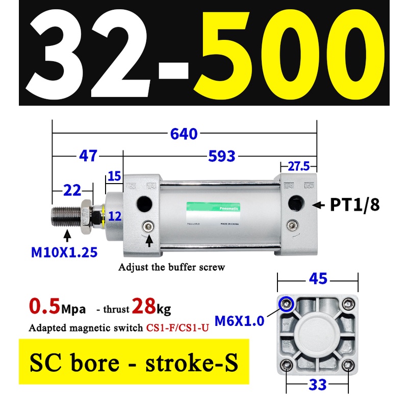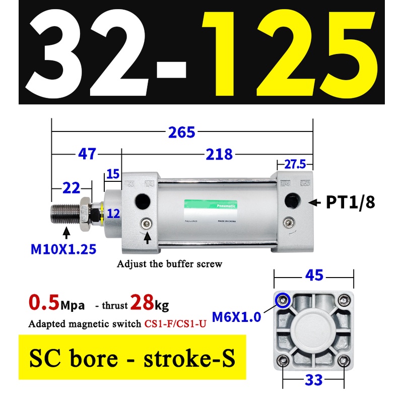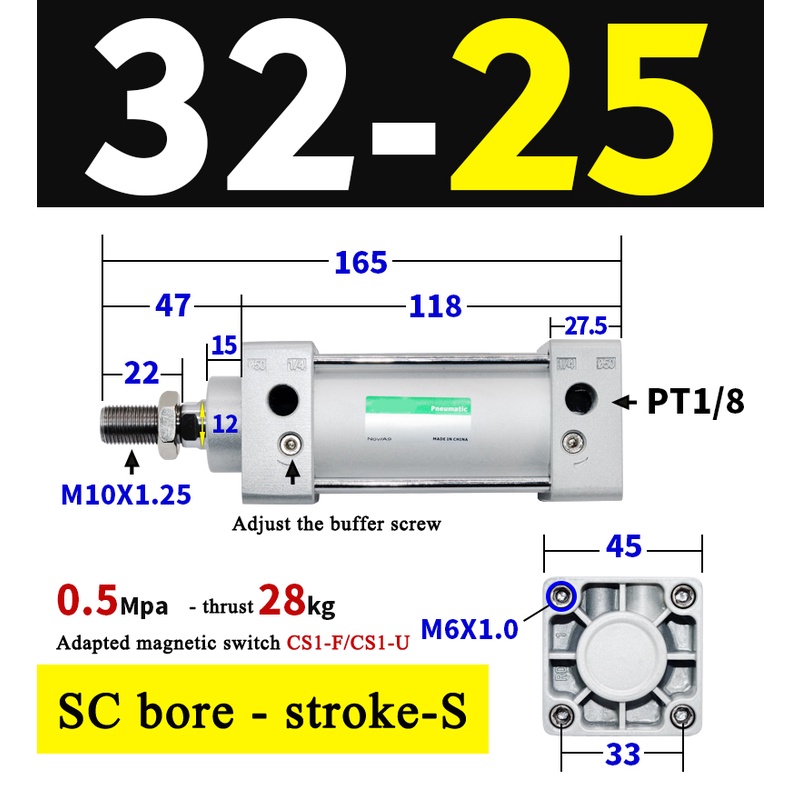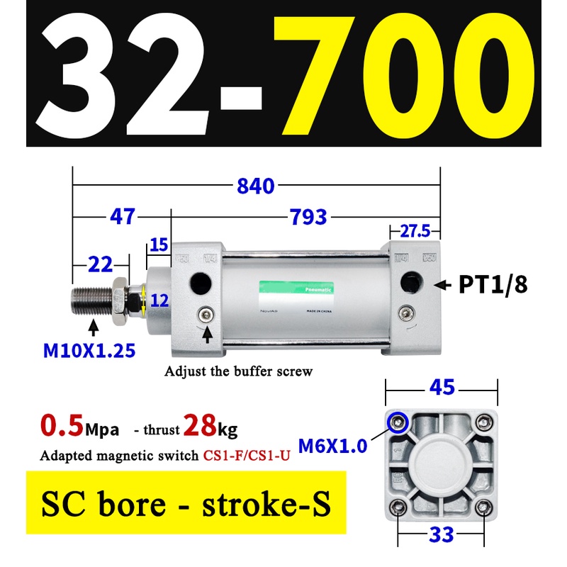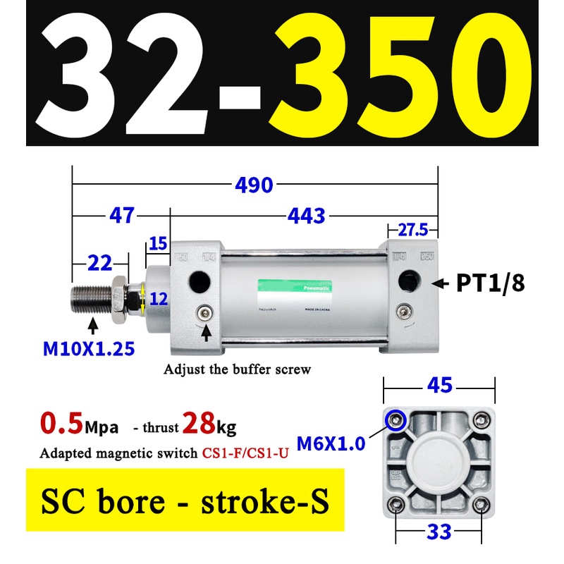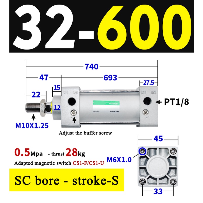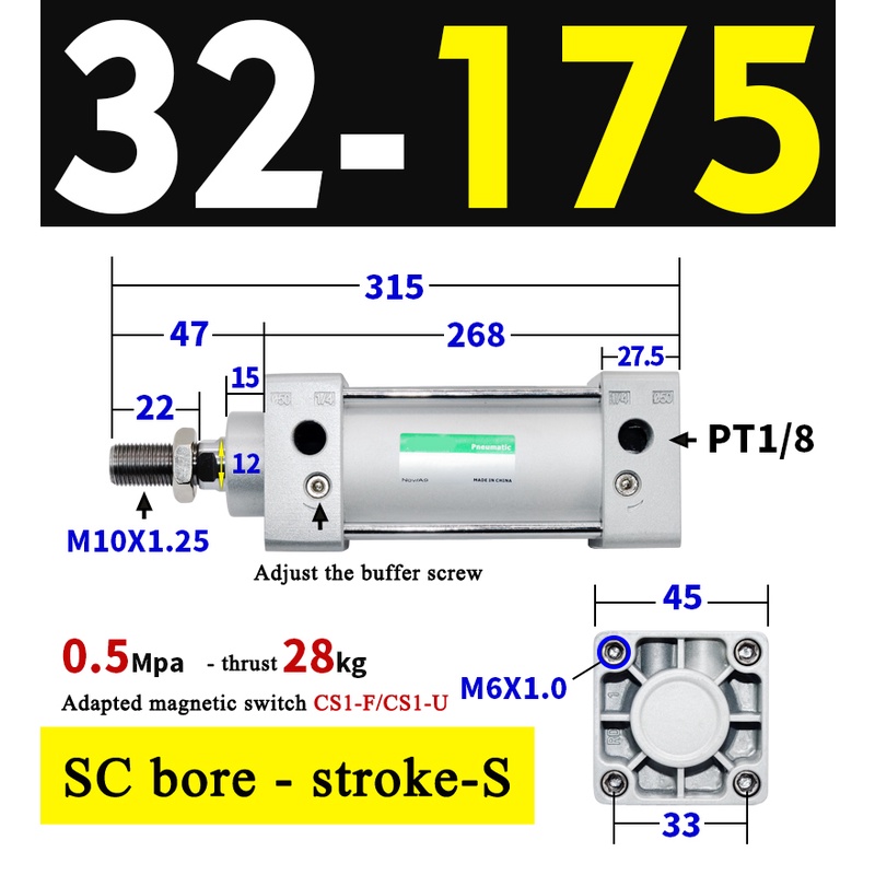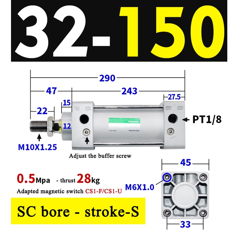 High Quality SC Pneumatic air Cylinder SC Series Economy model 32mm 40mm Bore Standard Cylinder ,SC Cylinder , SC Pneumatic Cylinder SC32/40-25X50X75X100X125X150X200X250S