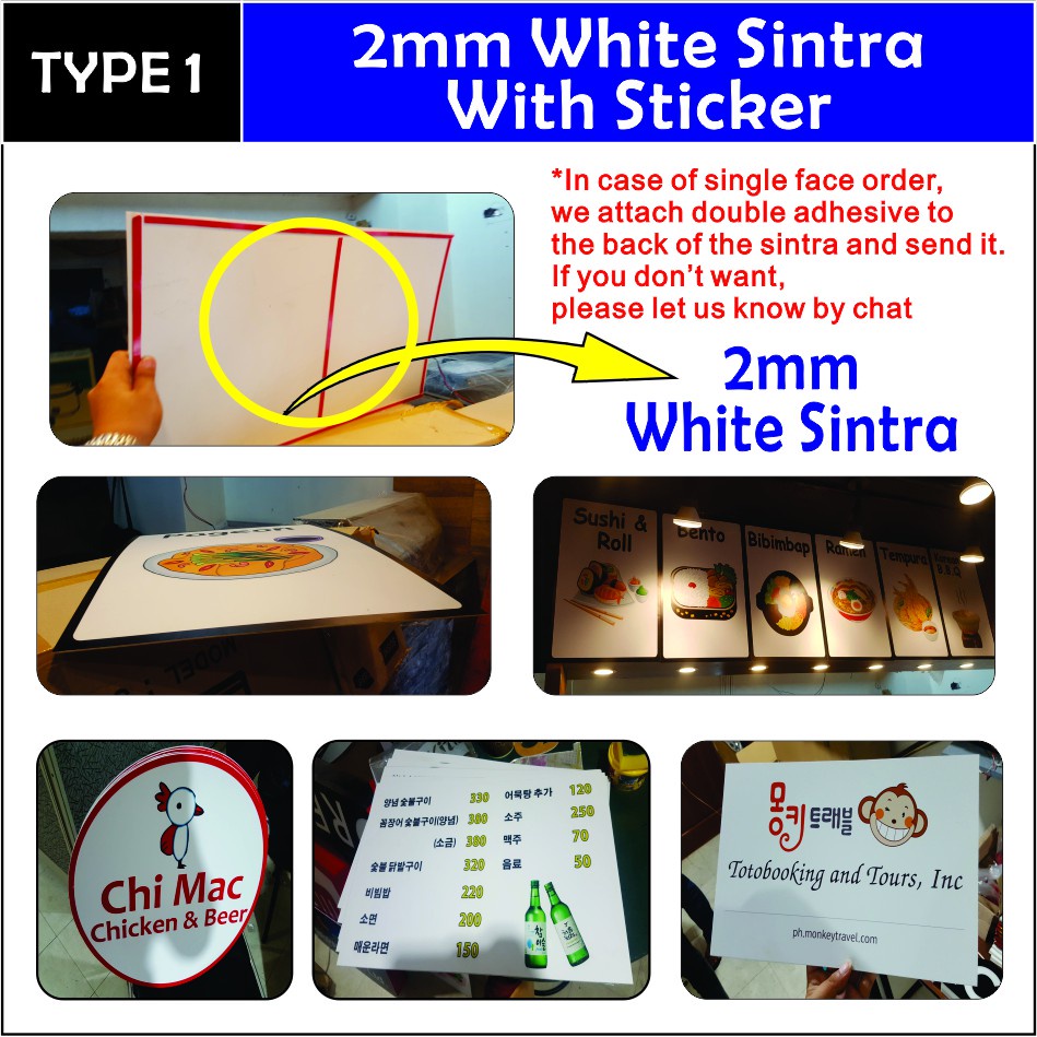 High Quality Sintra Board with Sticker / Customized Printing Menu Wall Decoration Sign Logo Signage