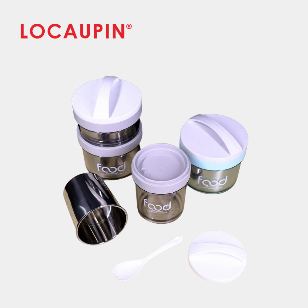 LOCAUPIN Thermal Lunchbox Leak Proof Vent Plug Design Insulated Meal Box Portable 2 Layer Bent