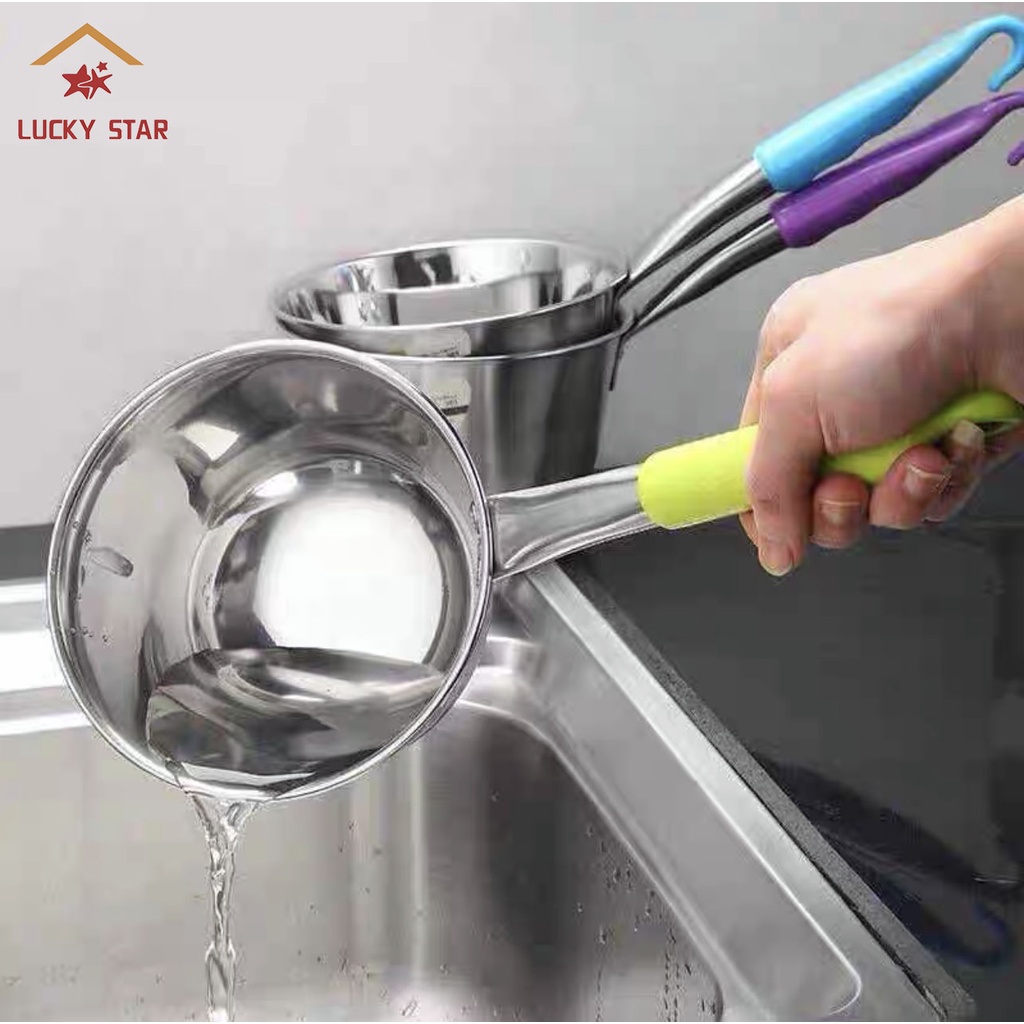 High Quality Water Dipper Color Handle Stainless Steel Tabo Soup Dipper Long Handle Water Scoops