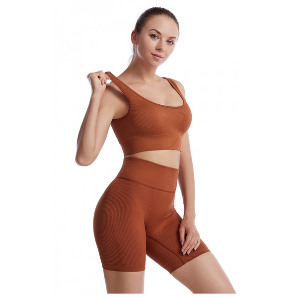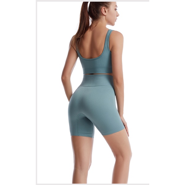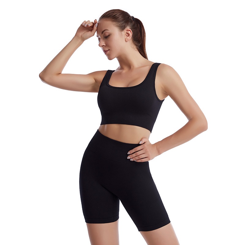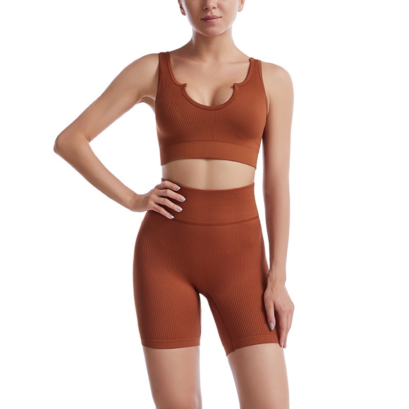 High Quality Yoga Set Yoga Shorts Sports Bra 2Pcs Seamless High Waist Knit Sexy Gym Shorts Yoga Suit
