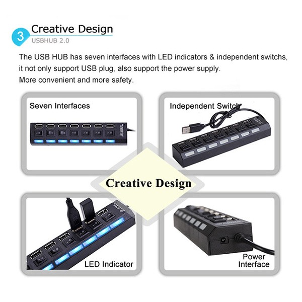High Speed 7 Ports / 4 Port LED USB For Pc Laptop Computer U Disk Phone Tablet Charger