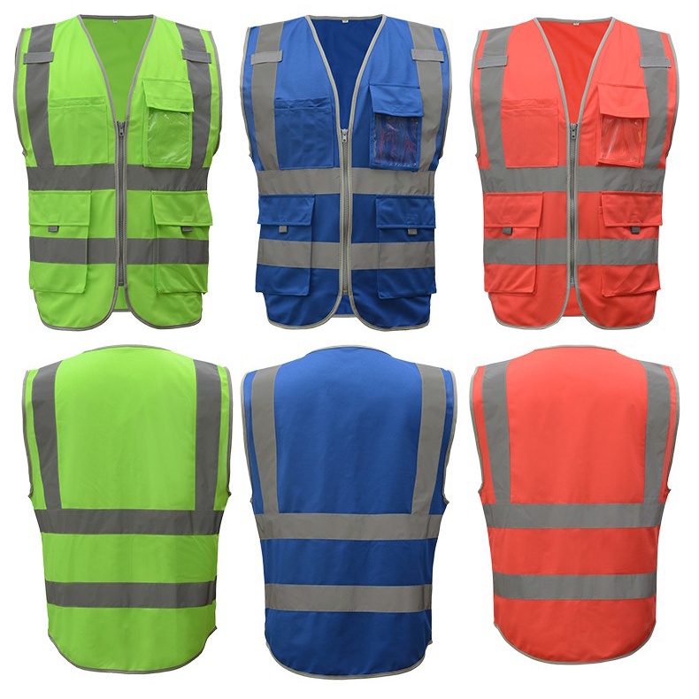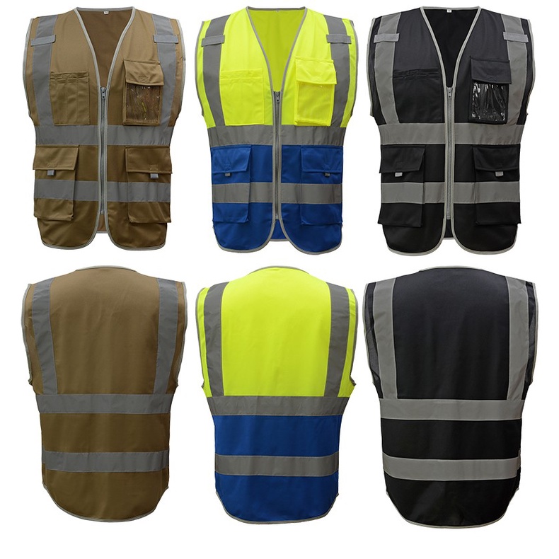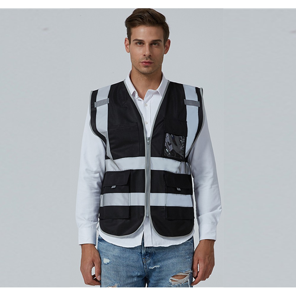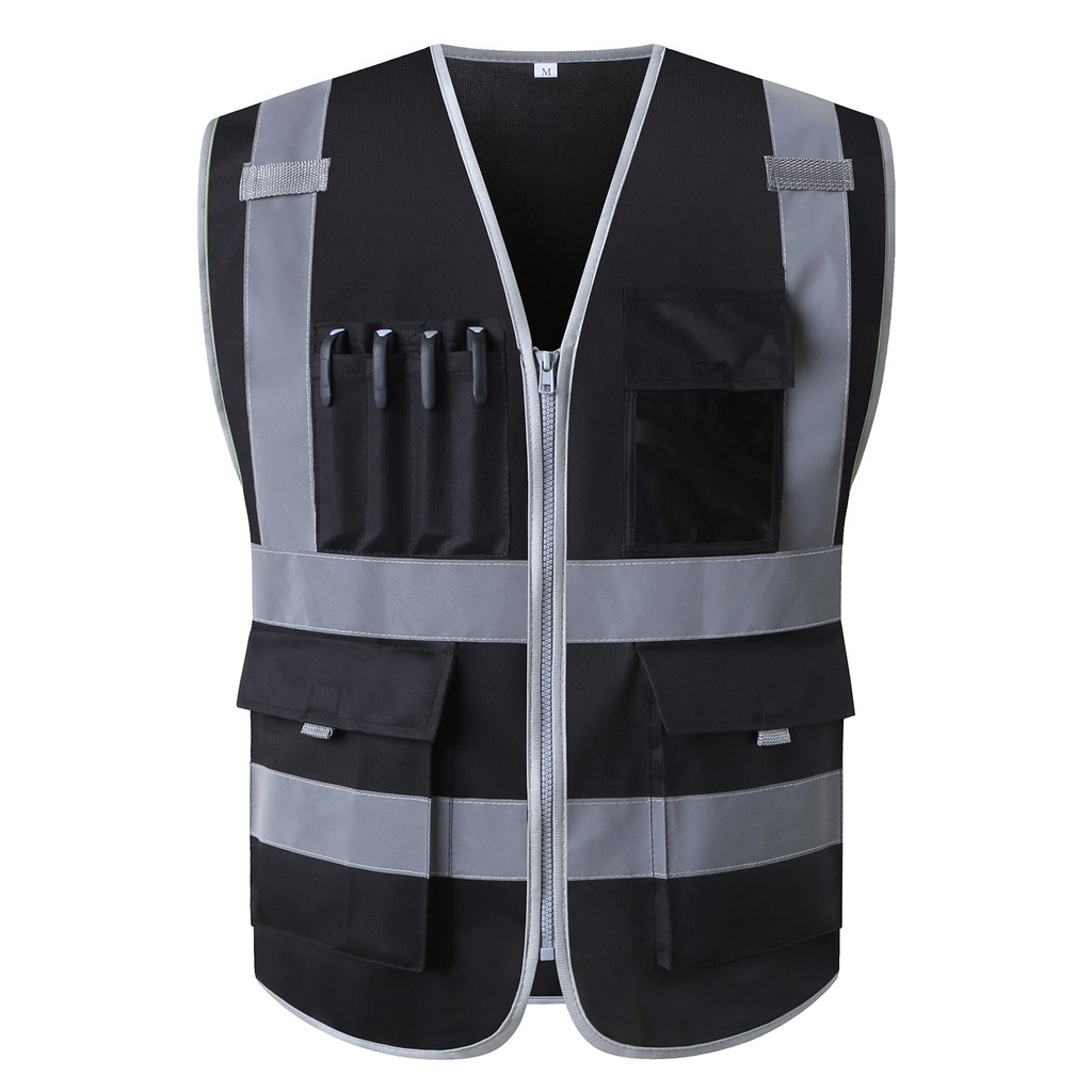 High Visibility Reflective Vest Safety Work Vest Construction Building Vest Safety Clothing Multi Pocket Black WorkVest