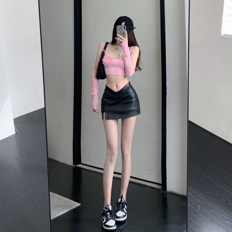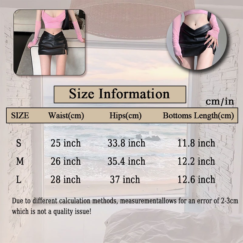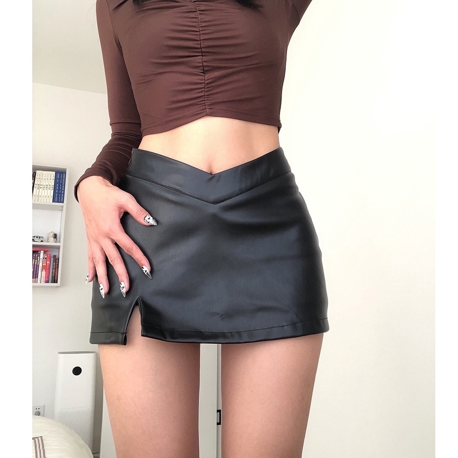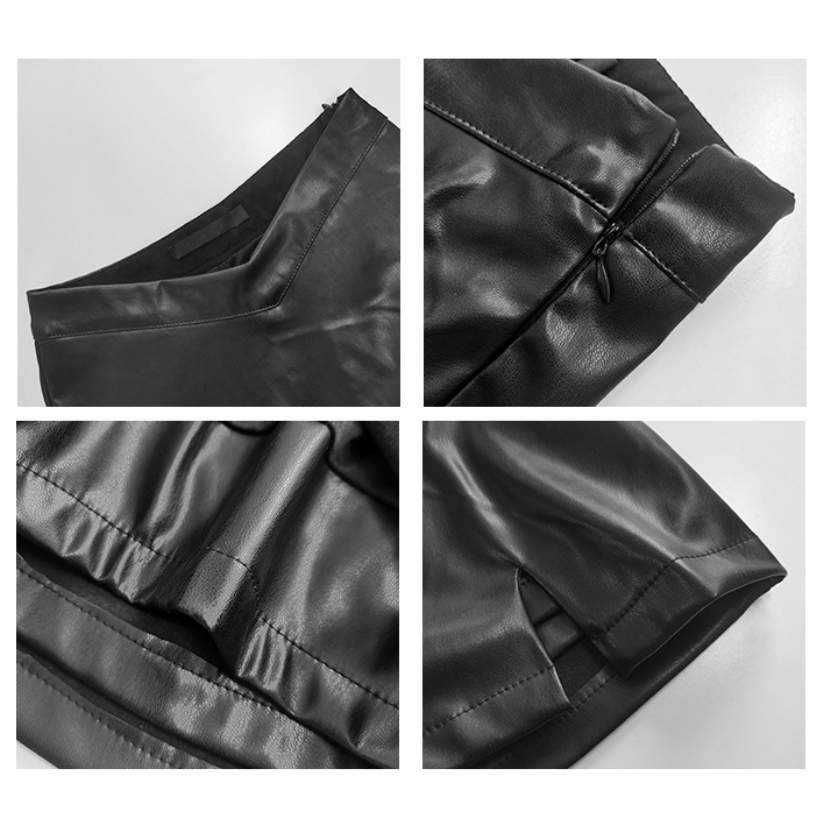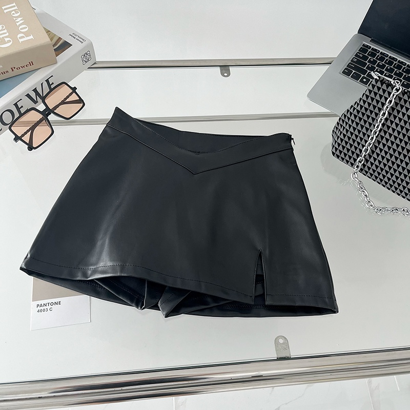 High Waist Leather Skirt with Bifurcated Design Includes Bottoming Safety Pants RetroStyle A-line Skirt