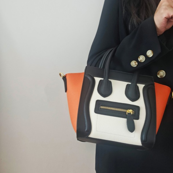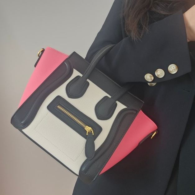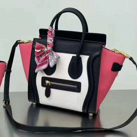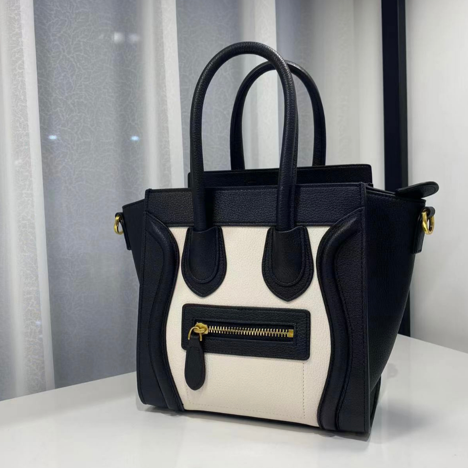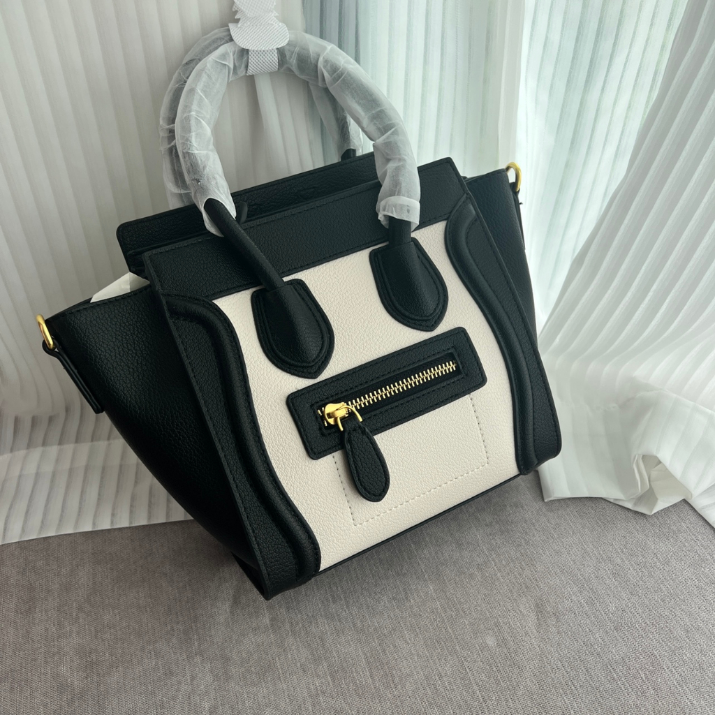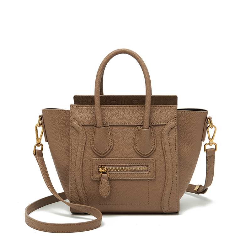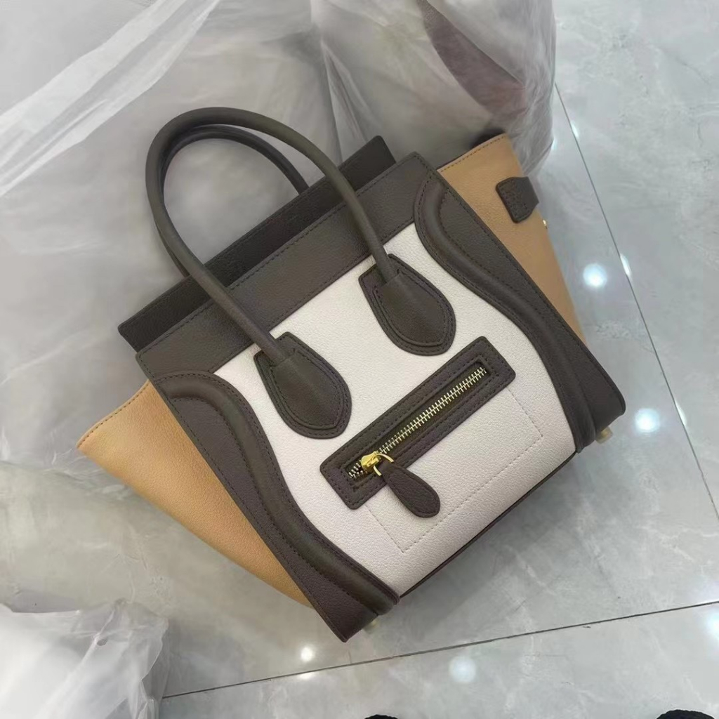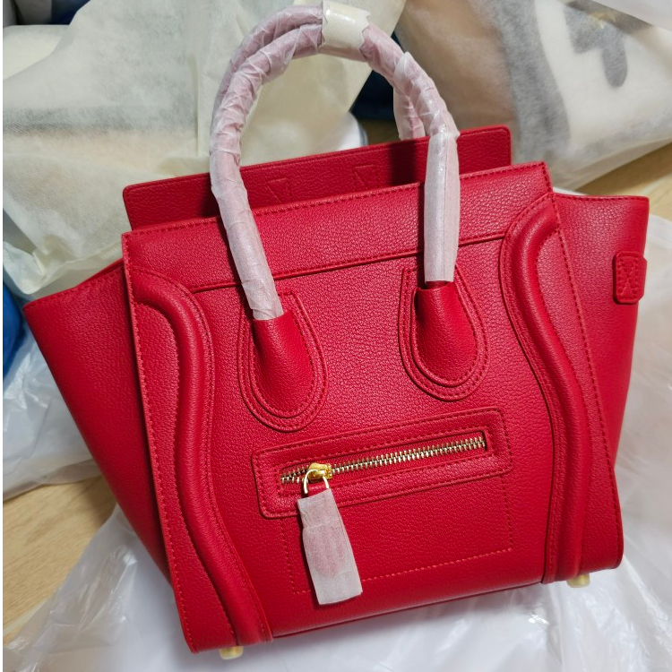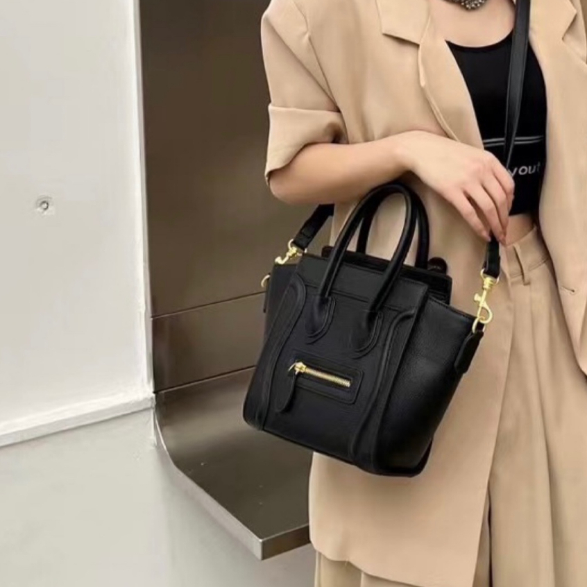 High-end Smiley Face Bag Genuine Leather Female Bag Niche Embarrassing Face Bat Bag Wing Bag Lychee Pattern Large-Capacity Bag Commuter Messenger Handbag LD777777-0912