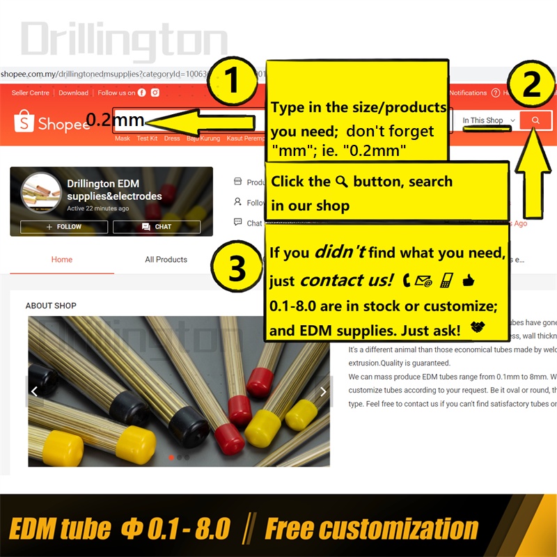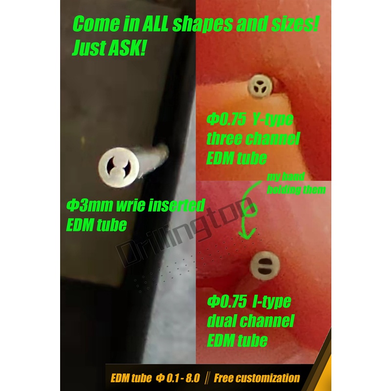 High precision 1.6mm 1.7mm multi-channel EDM electrode EDM tube brass copper electrode tube for small hole drilling