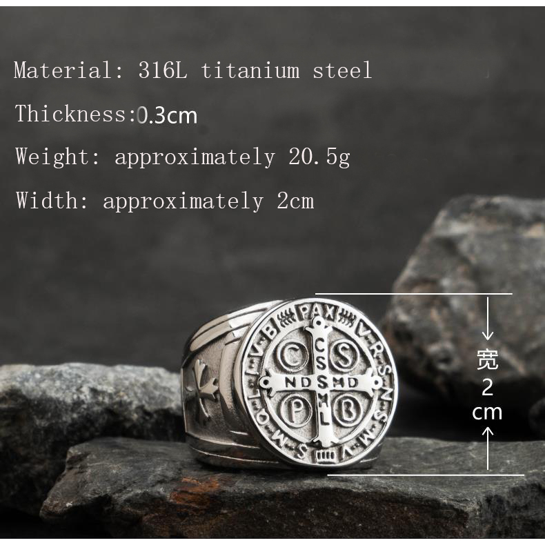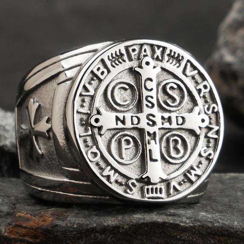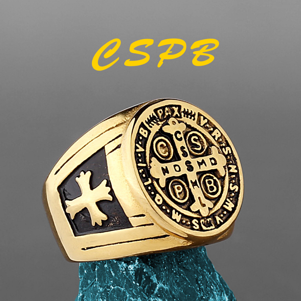 High-quality Fashion 18K Pure Silver Gold-Plated St. Benedict Ring Retro Colorfast Benedict of Nursia Ring Crux Sancti Patris Benedicti
