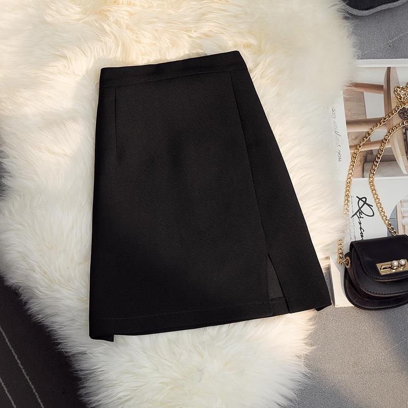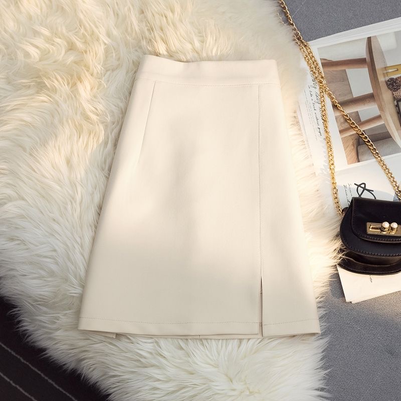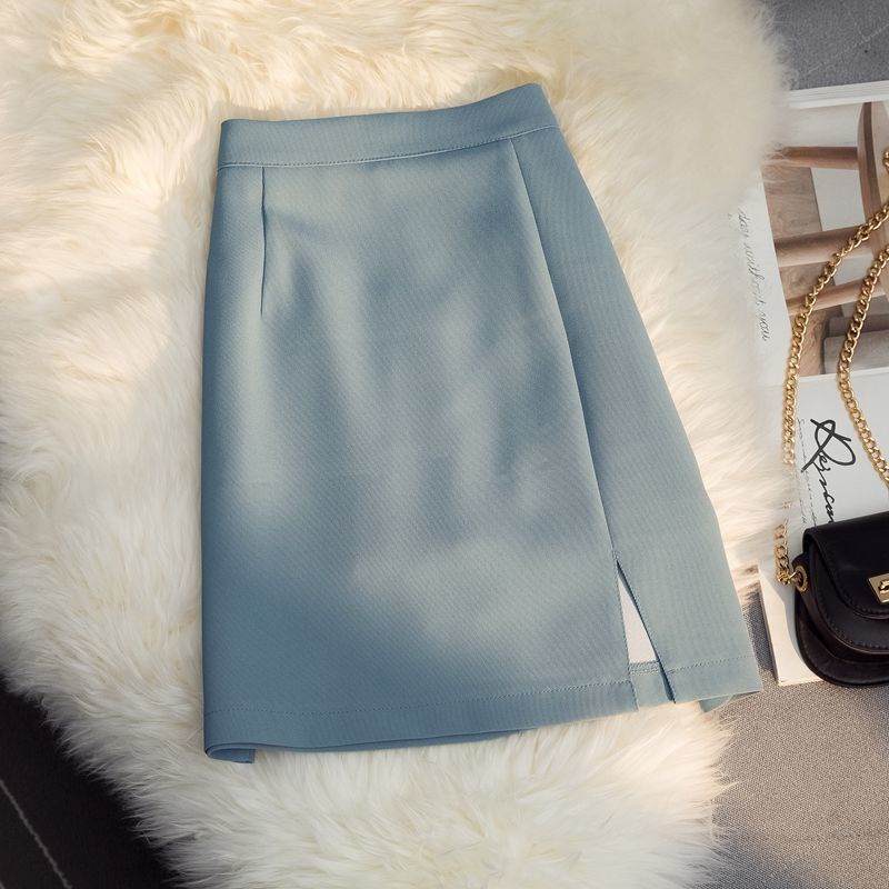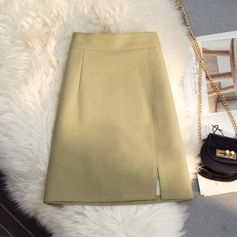 High waist split skirt A-line wrap hip versatile office lady skirt