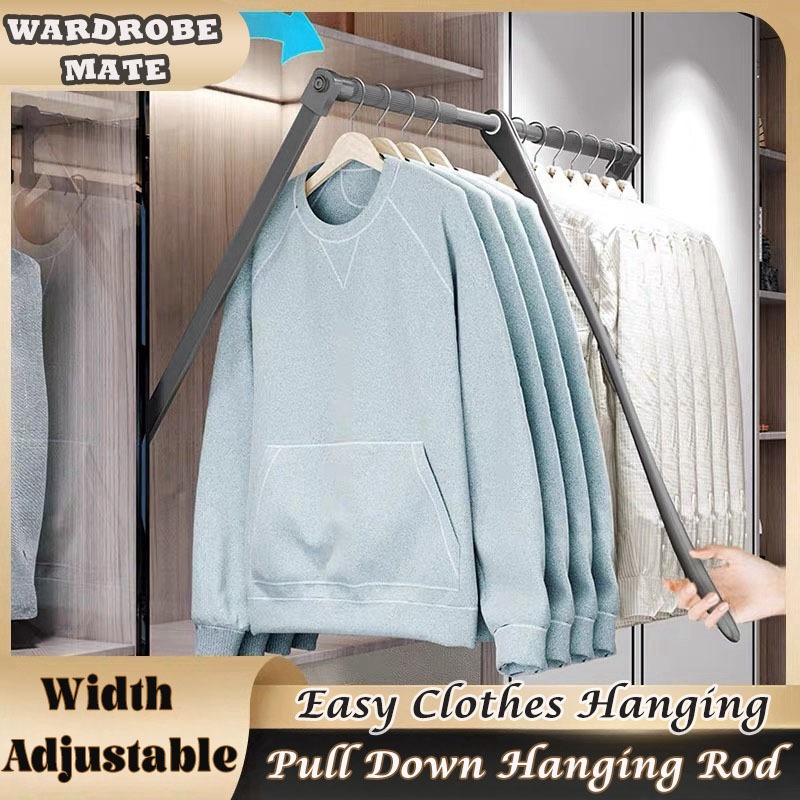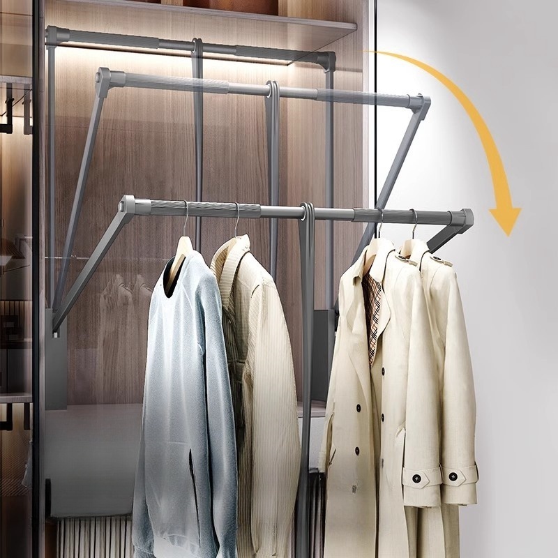 Hight Wardrobe pull-down clothes hanging rod pick up easily telescopic rod save space lifting hanger