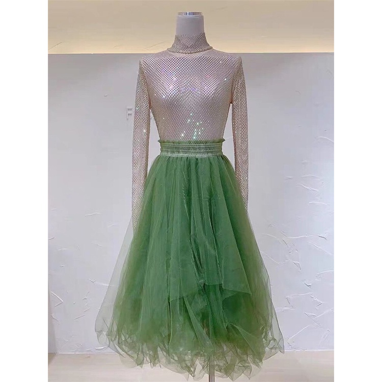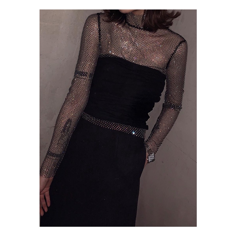 Hight quality Rhinestones Women Diamonds Turtelneck Tops & Tees Runway Luxury famous Brand European Design party style T-Shirts