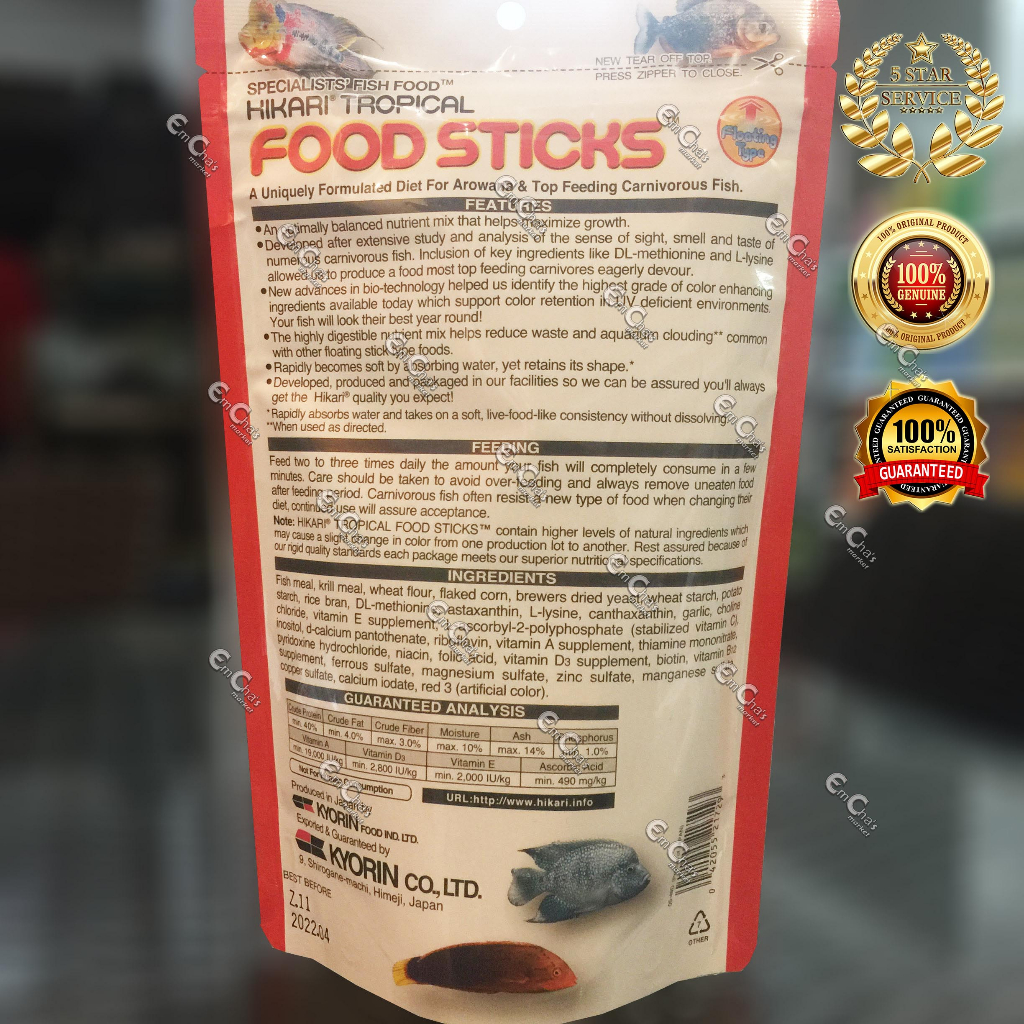 Hikari Food Sticks Jumbo Pack (250g) For Carnivore Fish Japan Made Fish Food Arowana Oscar Food(Ff)